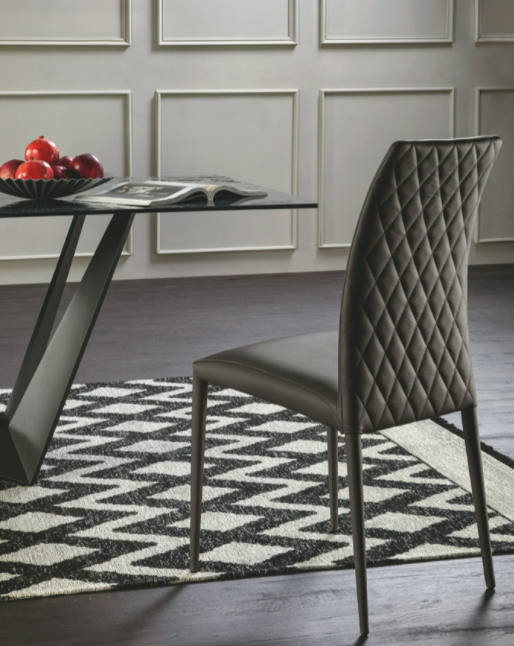 Sedia con imbottitura in gomma ad alta densità per un effetto confortevole e durevole nel tempo. Da oggi Charme si veste con un nuovo concept di artigianalità dettato da una elegante trapuntatura sullo schienale.