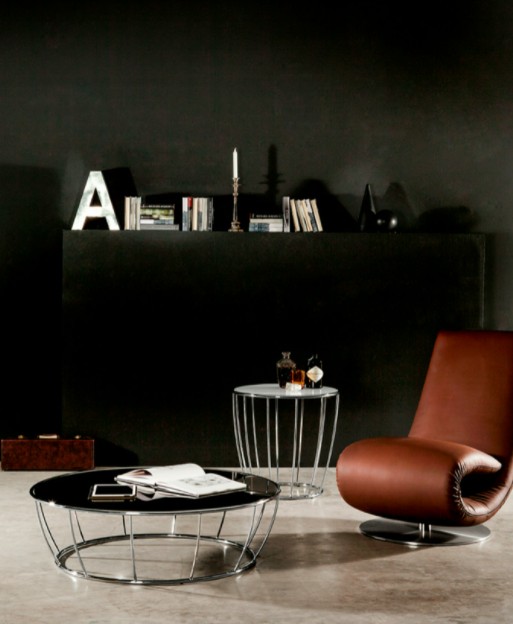Tavolini e servetto Amburgo giocano sulla rotondità delle linee, alleggerita dagli spazi lasciati liberi nella struttura.