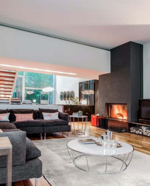 I tubi in metallo cromato o bronzo pietra salgono a reggere i top in vetro temperato nero, bianco o beige, o gres porcellanato.