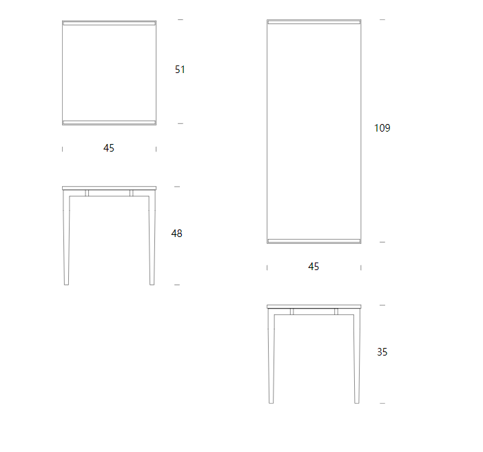 Tavolini con base in metallo laccato e piani in vetro martellato o in legno. Linee semplici che esaltano la matericità dei vari piani.