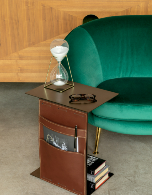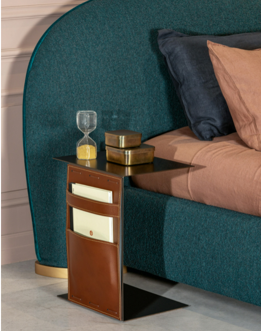 Opus è il servetto multifunzione dal design distintivo, che fonde eleganza funzionale e stile. Realizzato con struttura in metallo verniciato con finitura bronzo, Opus è caratterizzato da un’esclusiva tasca laterale in cuoio cognac.