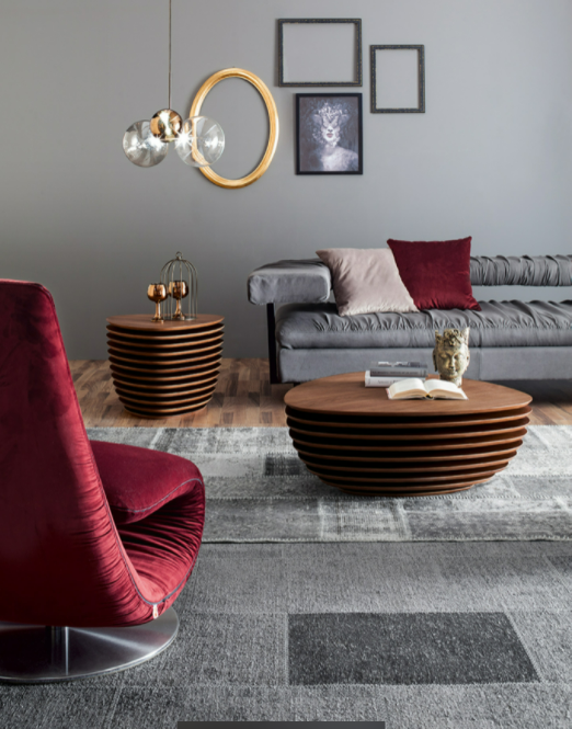 Un tavolino, o un servetto, i cui piani in legno catturano gli occhi quasi fossero in movimento.