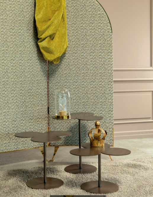Tavolini Ryazka, con top a forma di trifoglio. Vincitori del concorso Elle Decor Russia per la loro linea contemporanea e dal grande valore estetico che richiama questo elemento naturale.