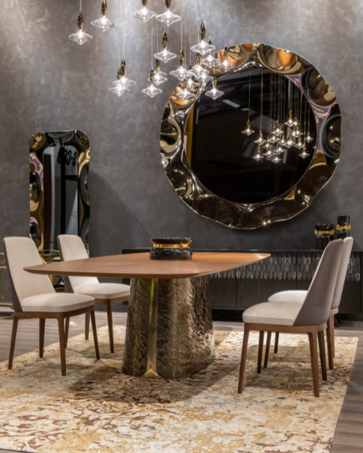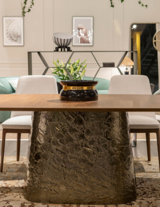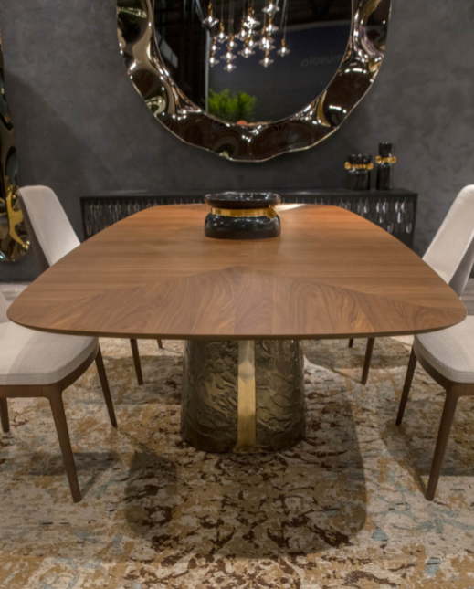 Ogni ambiente riluce di straordinaria bellezza con Adone, tavolo che unisce all’estetica scultorea le preziose finiture artigianali: Adone sorprende per l’audace abbinamento tra la naturalezza del top in legno e la preziosità della base in vetro curvato bocciardato e retroargentato, nelle colorazioni bronzo o fumè.