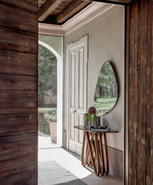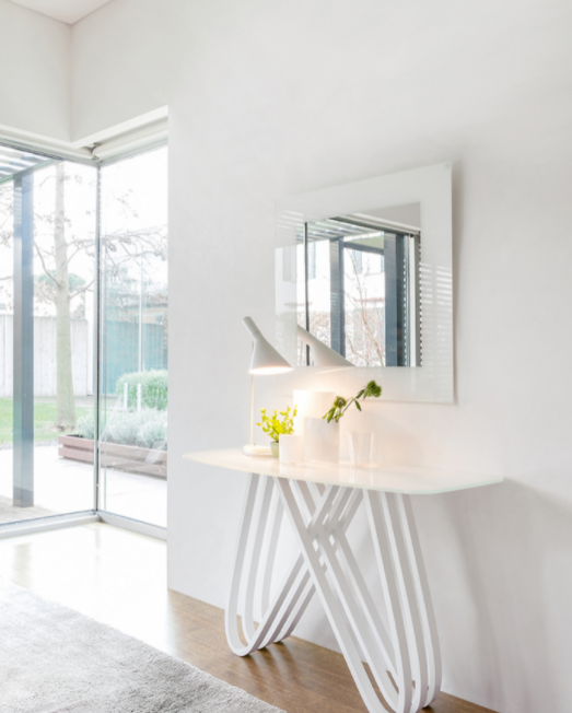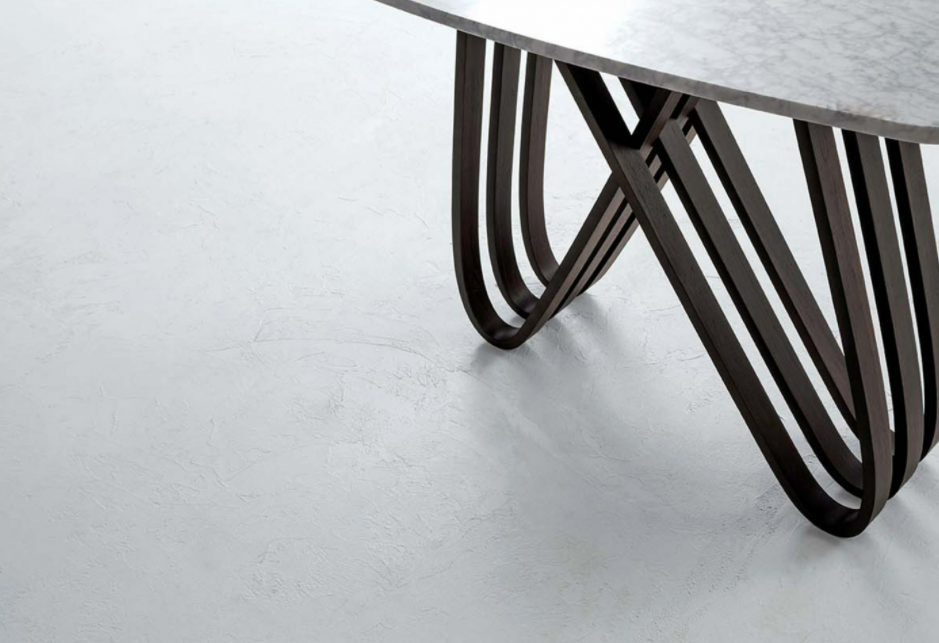 Lo stile del tavolo Arpa, gli intrecci della base in legno curvato e la piacevole rotondità del piano sono se possibile ancor più evidenti in questa sua versione a consolle. I classici colori del legno di Tonin Casa – noce canaletto, rovere scuro termotrattato e bianco opaco – incontrano piani in vetro bianco extra chiaro; le versioni in marmo comprendono il bianco di Carrara lucido, il Marquinia lucido.