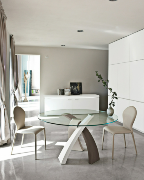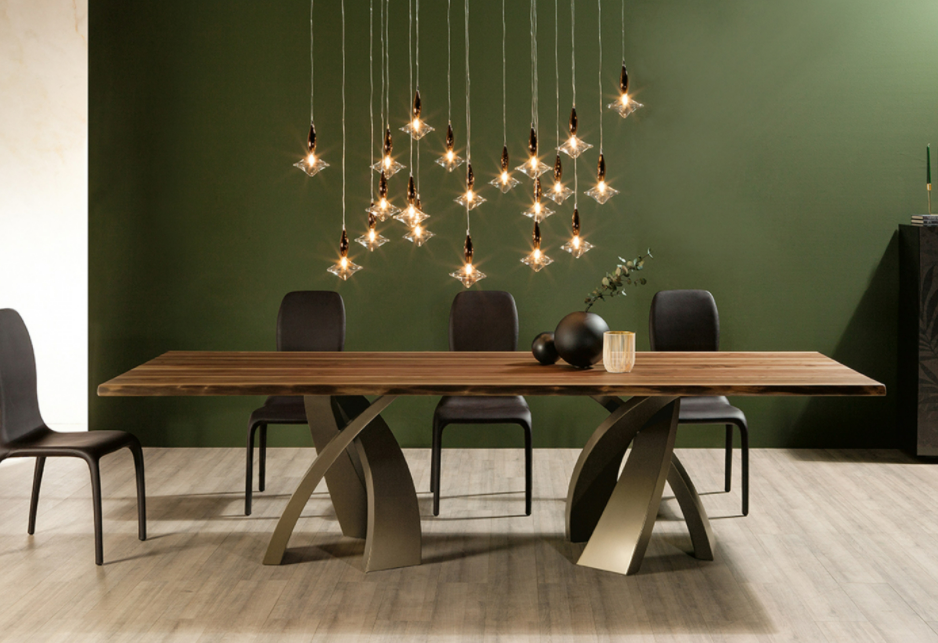 Un’ellissi di legno in diverse essenze, o di vetro temperato elettro-saldato a raggi UV su di una piastra d’acciaio; il tutto poggiato su di una base in metallo curvato e verniciato, ad ottenere un effetto di grande ricercatezza estetica. Con Eliseo, nasce un tavolo da pranzo di estrema raffinatezza, disponibile anche in versione tricolore e a doppia base, capace di adattarsi a stanze di diverse dimensioni.