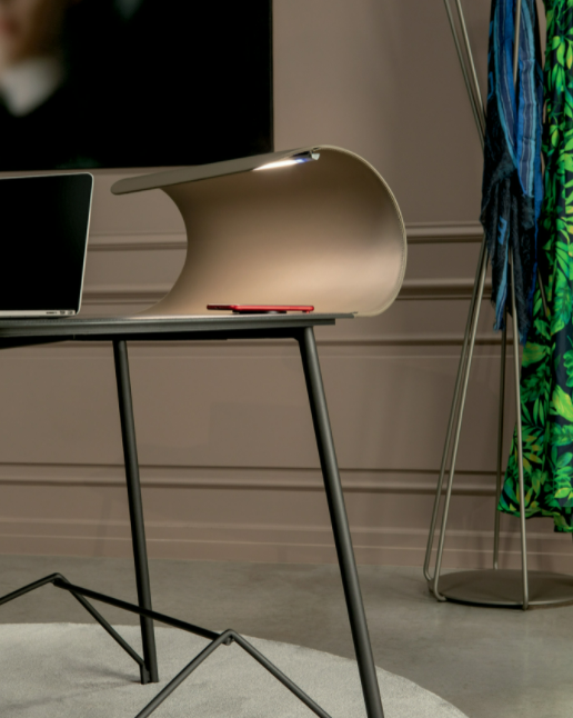 Preziosa artigianalità e tecnologia innovativa sono il connubio che caratterizza lo scrittoio Surf, con caricabatterie wireless integrato nella superficie, che rende possibile caricare il cellulare appoggiandolo sullo scrittoio. Surf, dalla distintiva linea dinamica che rievoca un’onda, è rivestito in cuoio e dotato di luce dimmerabile per regolare l’intensità del fascio luminoso. Inoltre l’ampio piano per pc, libri o notebook, rende questo scrittoio un alleato ideale anche per tutte le necessità di homeworking, coniugando funzionalità e stile, a casa come in ufficio.