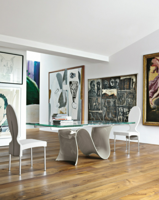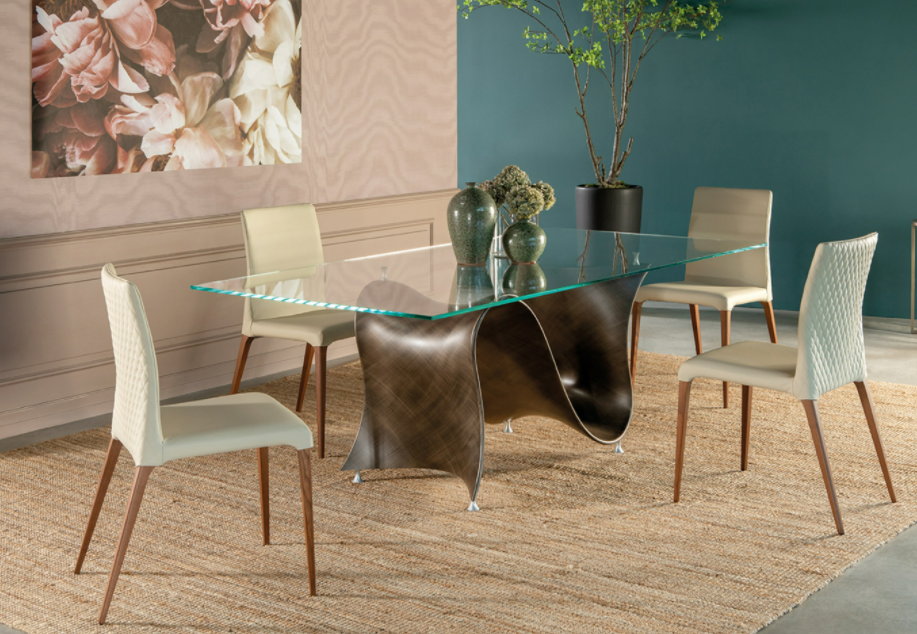 Wave è il risultato di una lunga serie di studi e pensieri su diverse tecniche di lavorazione e materiali innovativi. L'utilizzo del Baydur ha permesso che la base andasse ad imitare perfettamente la forza ed il movimento di un onda; inversamente, il piano viene sostenuto da quell'onda, placandola e ridefinendola: trasformandola da puro movimento a stasi.