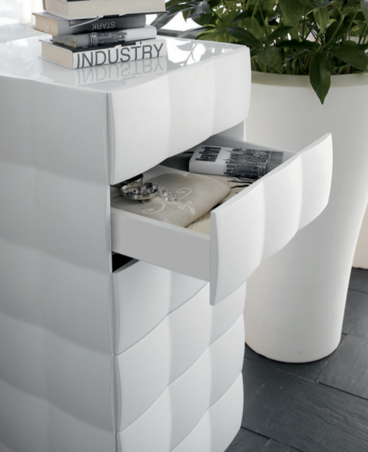 Venice Night è l’esempio forse più marcato di come la tecnica possa concludersi in dolcezza, in raffinatezza. Il materiale è l’ MDF, microgoffrato e lavorato a laser, che crea un effetto capitonné e vivifica, ammansisce, dando ad una struttura rigida l’aspetto di un morbido cuscino.