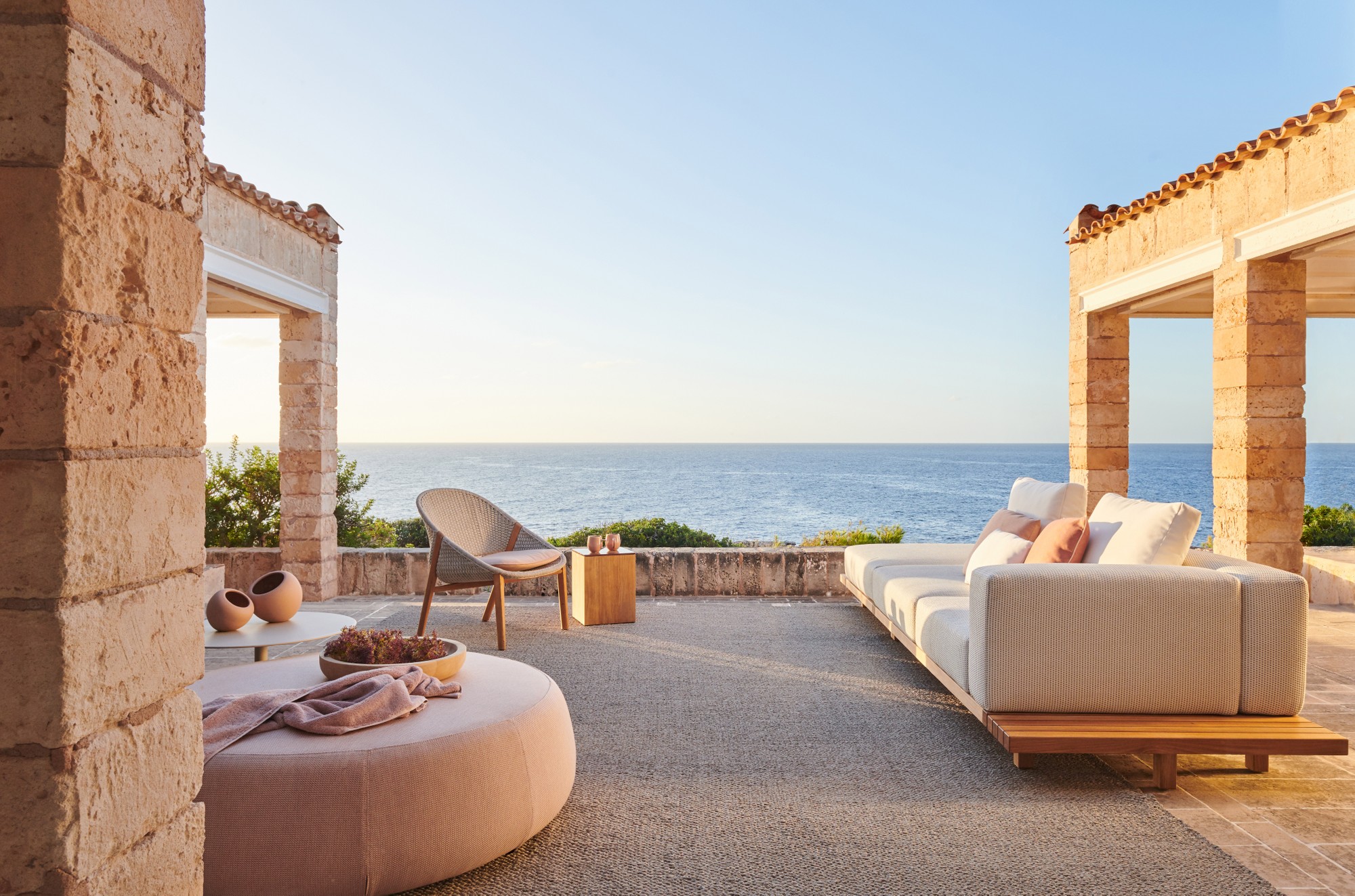 Inspired by nomadic life, the multi-purpose Nomad poufs will wander throughout your garden or patio, serving different functions such as a footstool, side table or additional seating. The poufs are especially designed for outdoor use using a draining structure in EPS, upholstered with dry foam and an outdoor fabric. The base structure is made of marine-proof multiplex to create a solid base and, thanks to the three invisible legs, the poufs seem to float. Designer Monica Armani gave the Nomad poufs an harmonious shape and, with a sophisticated range of over 100 outdoor fabrics, they are an elegant addition to any outdoor siting space. Nomad poufs are available in three sizes.