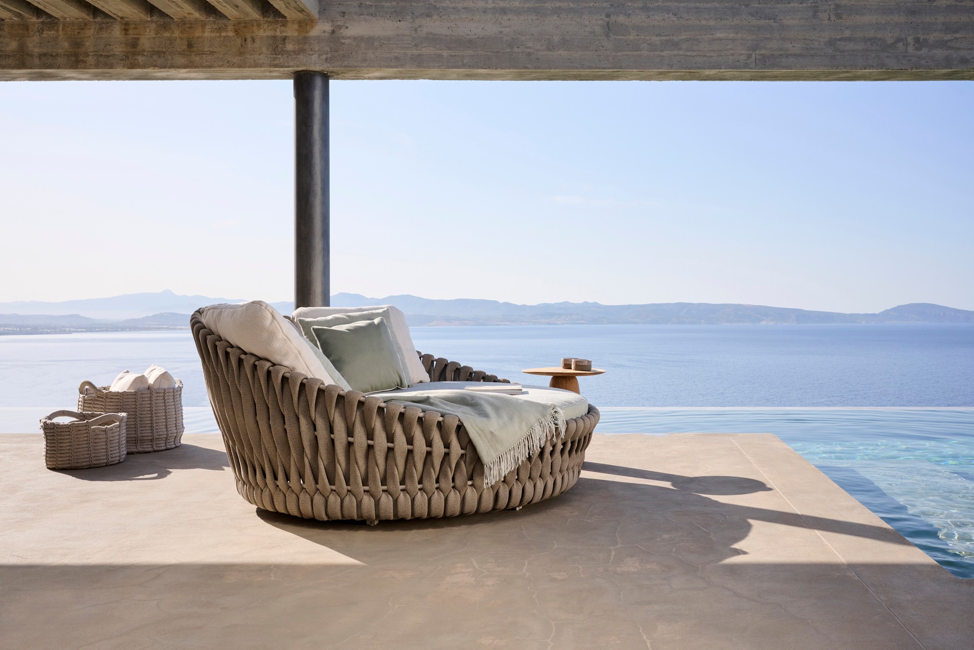 The idea of GOBI was inspired by Ilia Eckardt's innovative handmade crochet technique and is an enlarged version of a heritage knit stitch. It's an impressive handmade piece consisting of recycled yarn, with strong visual impact and a reflection of true skill. The contemporary take on celebrated craftsmanship and the presence of a mood-enhancing organic feel flawlessly embody nature. The handmade basket collection is a start of an accessory line, bringing a family of shapes used for decoration, storage, planters, and more.