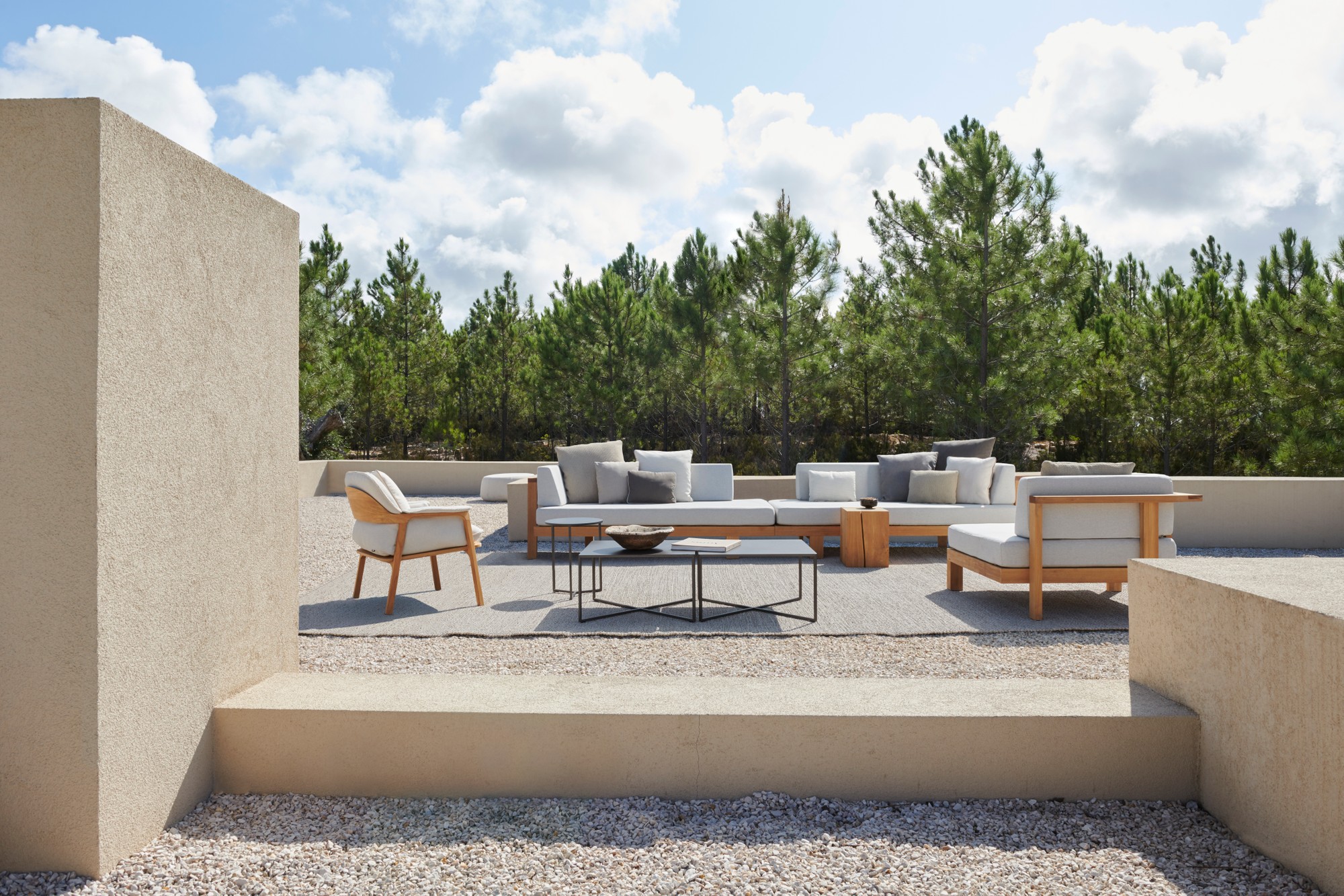 With the Pure Sofa, designer Andrei Munteanu reduces design to the essence, devoid of all excess: pure simplicity and elegance. This modular outdoor sofa consists of five elements that combine easily into a corner sofa, long couch, lounge bed, etc. The sofa is available in high-quality teak from Indonesian plantations. Miami's elegant cushions add a defined, contemporary edge to the sofa and are available in numerous luxury outdoor fabrics. In addition to Miami cushions, the Pure sofa is also available with casual cushions.