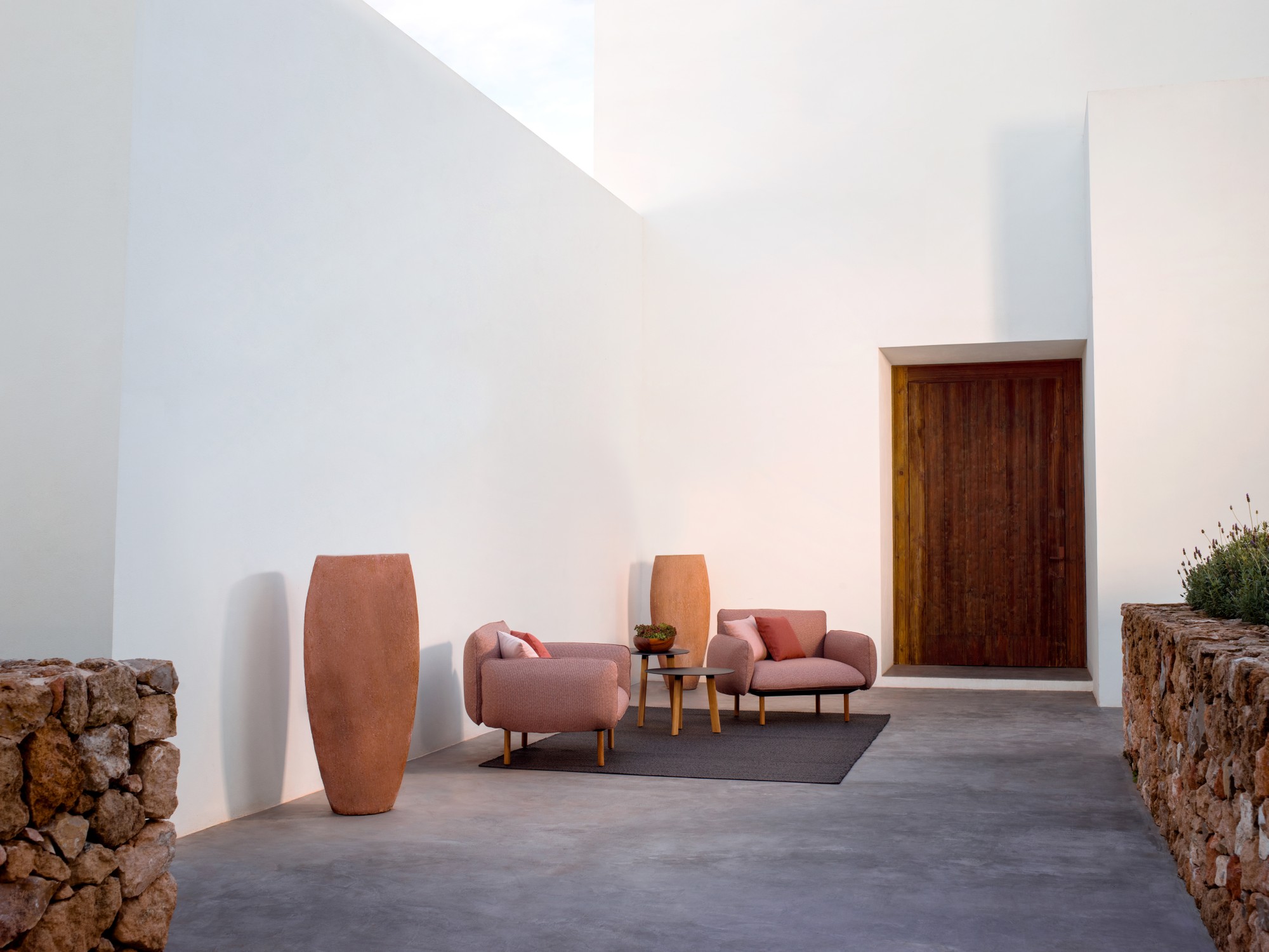 A deeply cushioning sofa to curl up on, the Senja one-seater comes with high or low arms. The generous filling gives the sofa a pleasing, cocooning shape. The sofa comes with teak or powder-coated aluminium legs in linen or wengé.