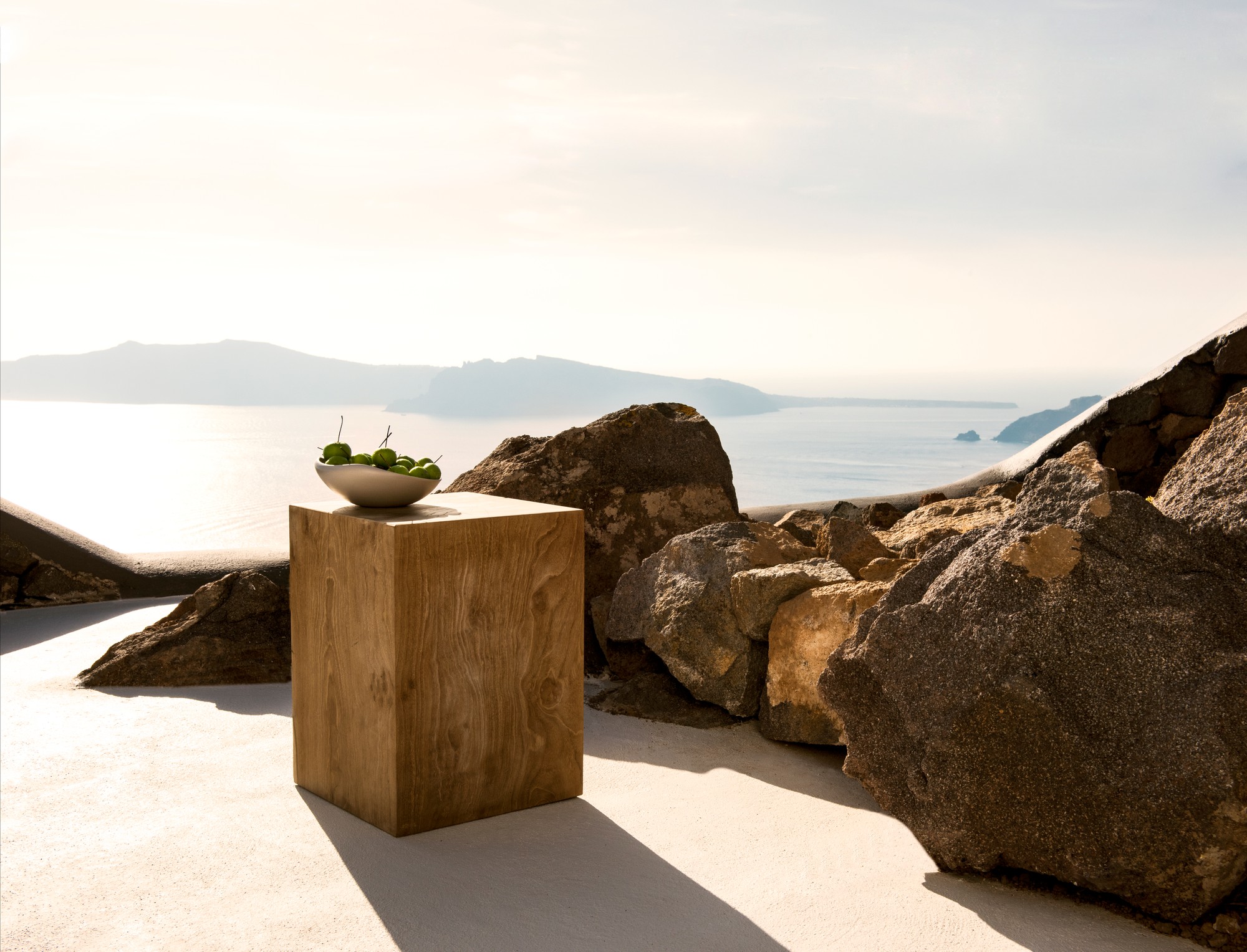 The Roots items with their primitive look, are made of one massive piece of teak. Cracks and even holes in the wood are part of their charm, making every piece unique. Use one piece as a small side table or combine several, in a horizontal and vertical way, to create a strong design statement.
