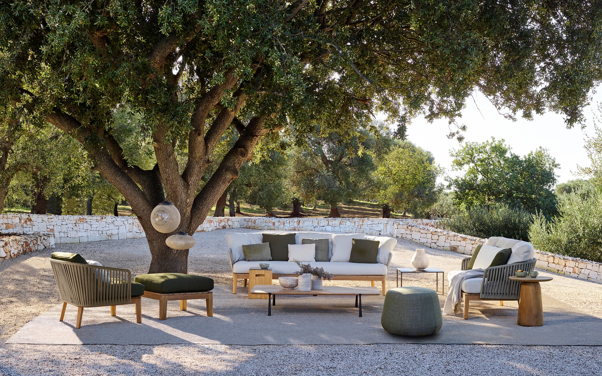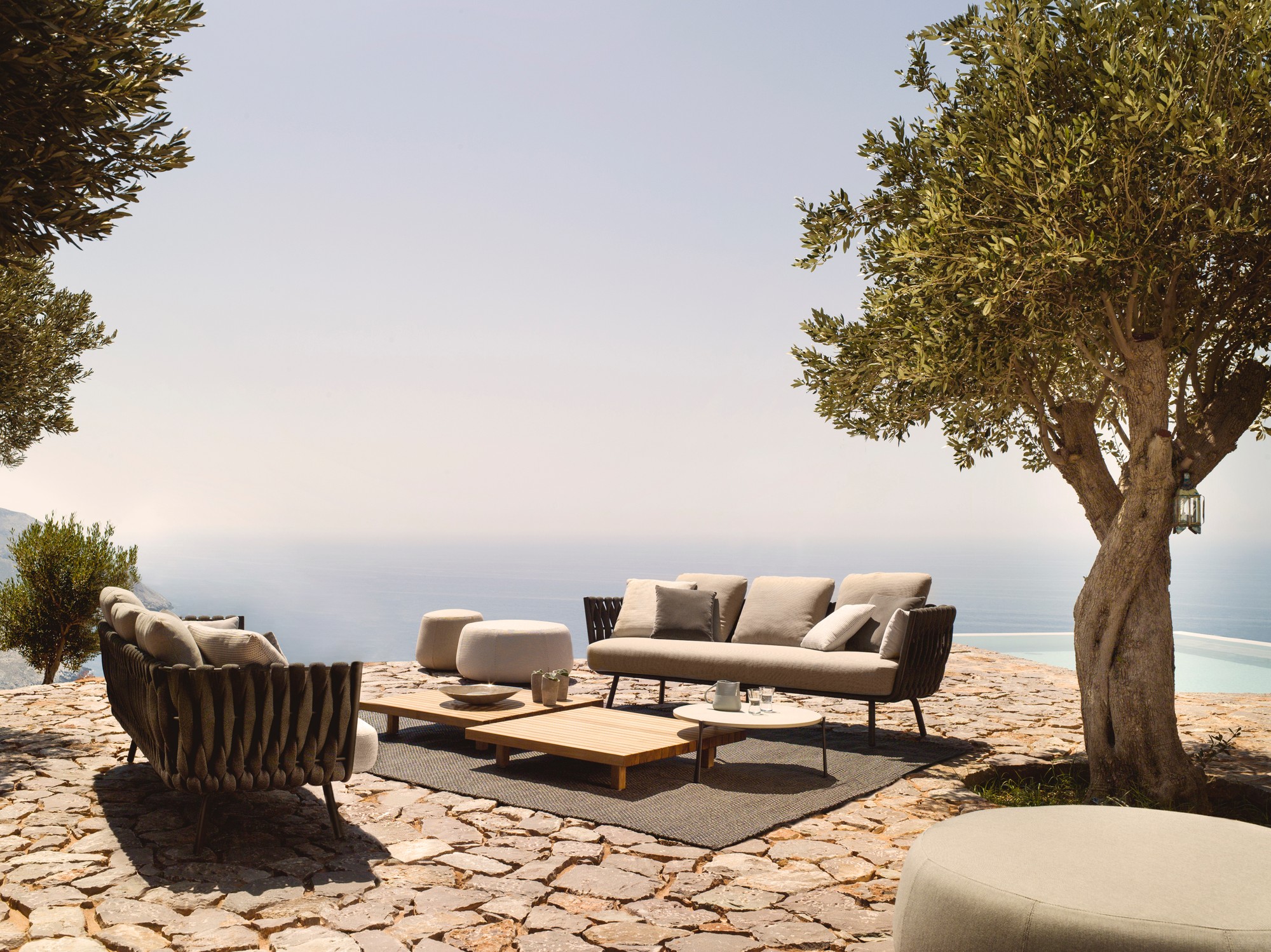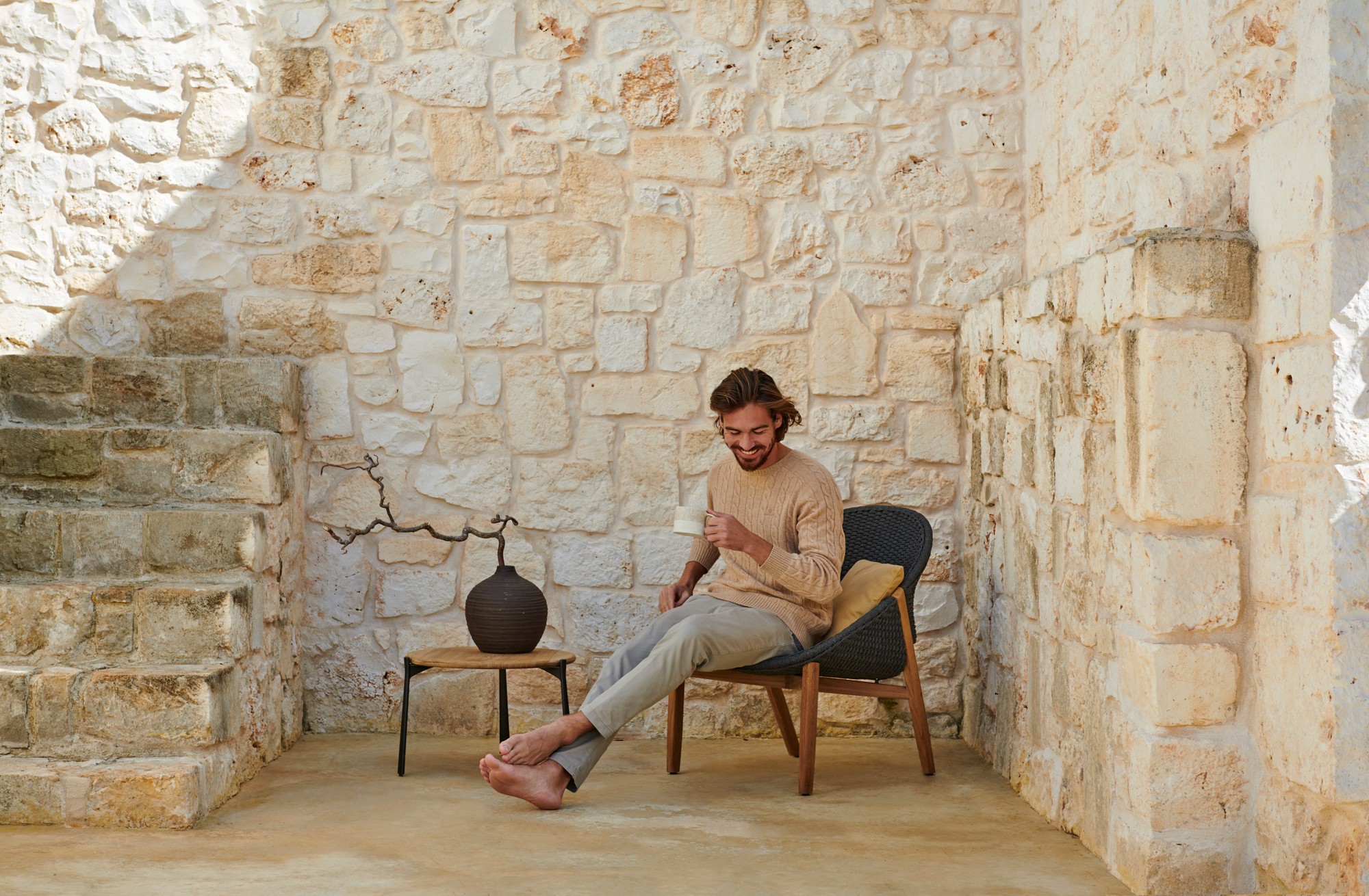 An elegant series of coffee tables which suit every type of sofa thanks to the different colors and table tops available. The slightly tapered, slimline legs support a table top in teak, granite or ligthened concrete. Different shapes, heights and diameters offer the opportunity to create enriching combinations.