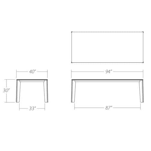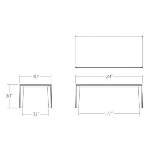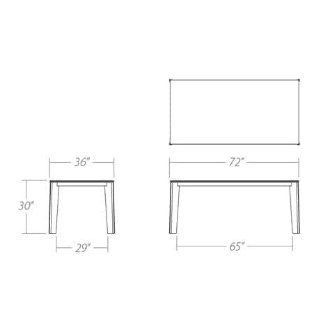 Solid wood legs: 1 1/2” x 6 1/4”.