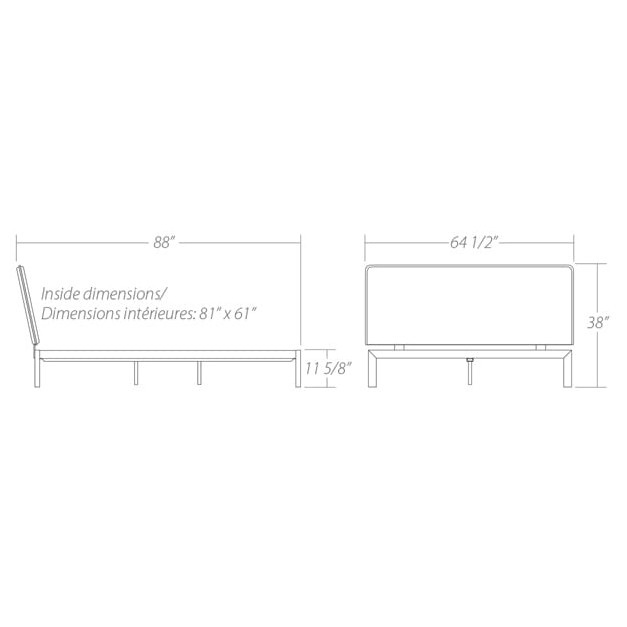 5/8” upholstered particle boards with ventilation holes supported by steel reinforcements.