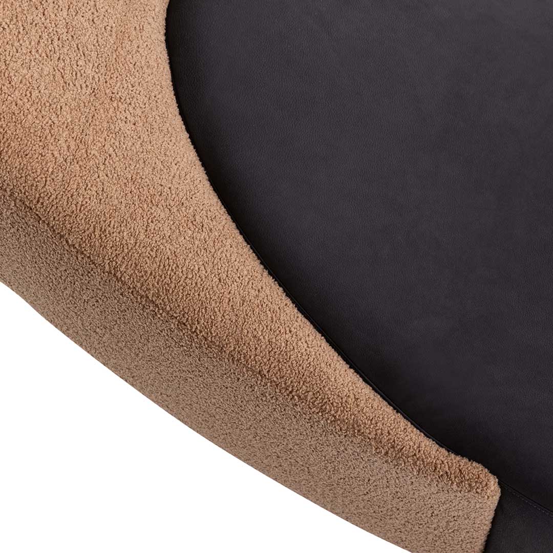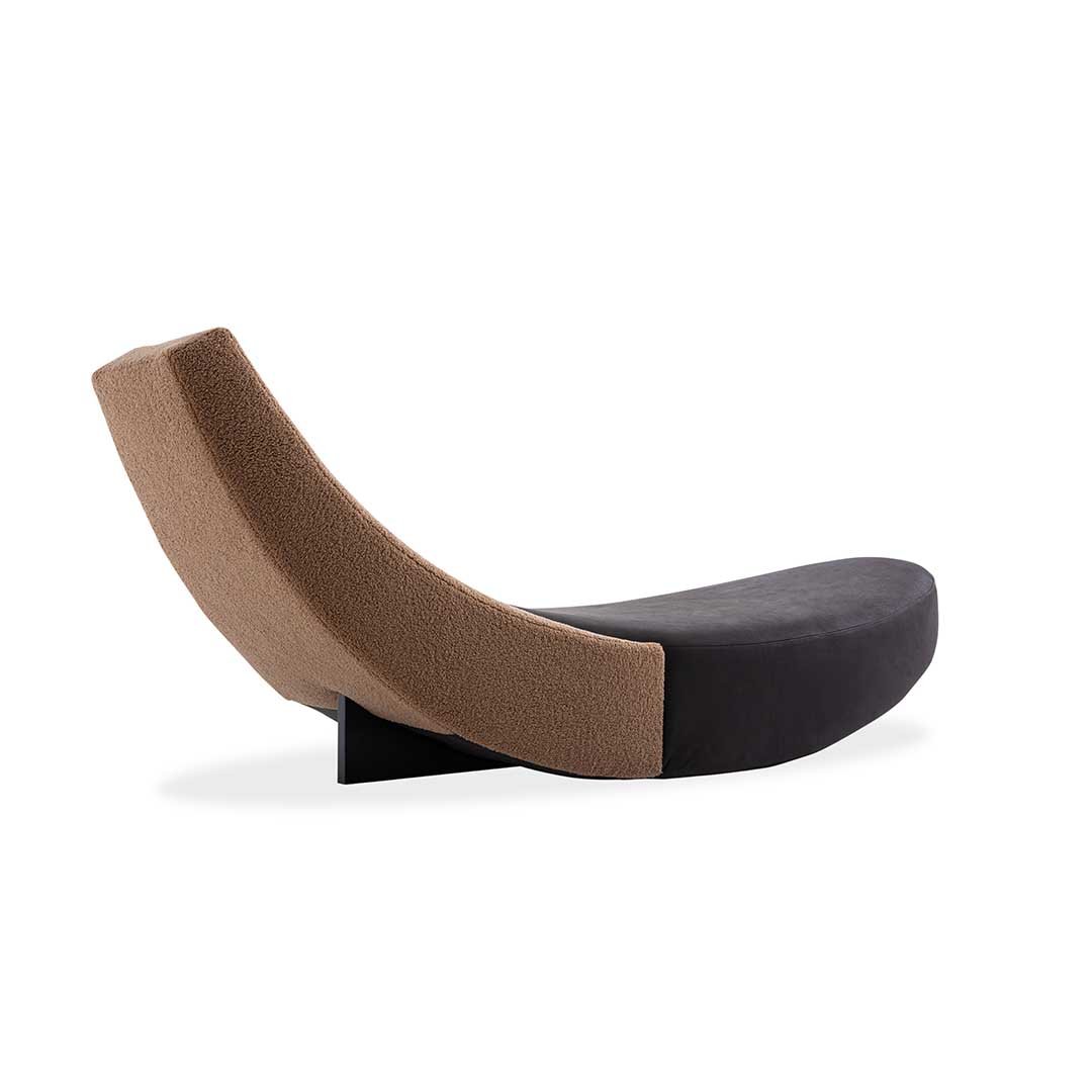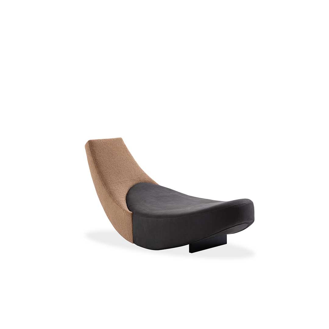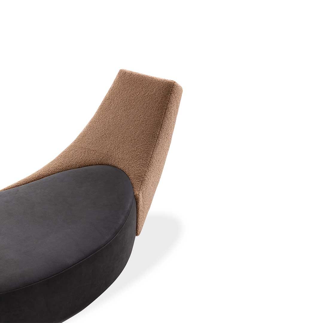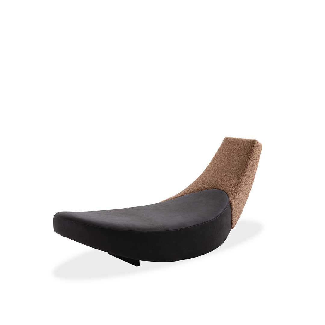 A precise sign cuts through space, bringing Leonardo Talarico’s sculptural approach to design into the home with the Halfmoon dormeuse. An essential and cosy object for rediscovering the pleasure of relaxation. With its almost oriental minimalism, Halfmoon lends itself to meditation and recalls the tangram in the intersection of its two main elements. Wooden and steel frame, cover in fabric or leather, base in matt black varnished wood.