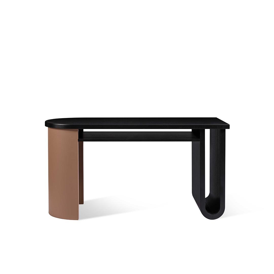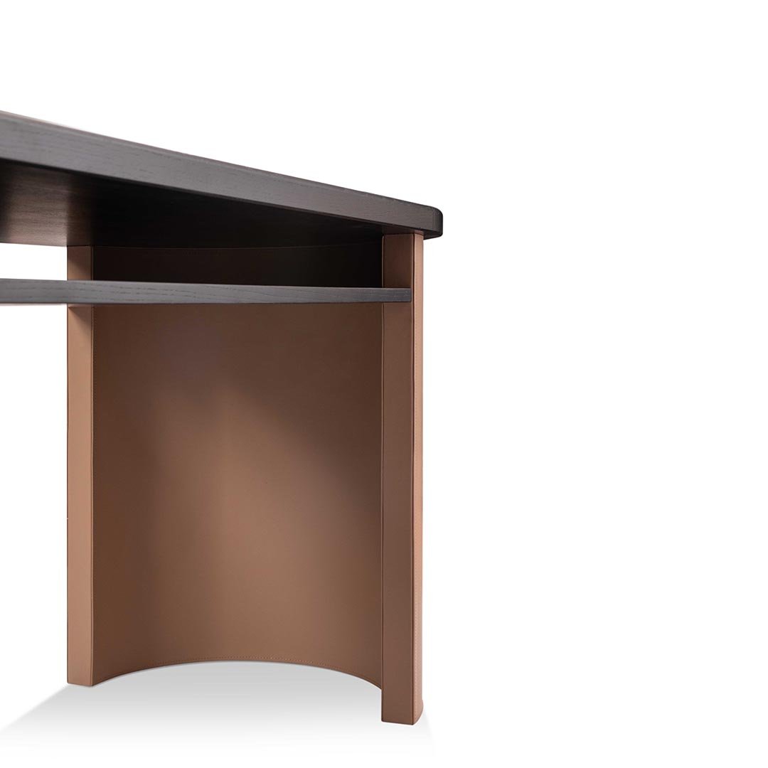 Papel is a sturdy and very light desk. It combines solid elements and cavities, minimal design and rounded shapes drawn from Roman architecture. Its handcrafted solid wood frame features soft, rounded edges. The desktop and the half-circle legs can be covered with leather to create unusual colour effects. Trussardi Casa introduces Papel as a workstation for home interiors.