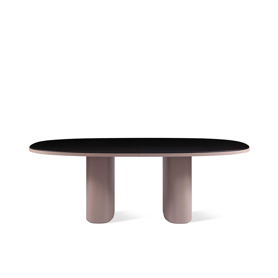 Tangibility and abstraction merge in Sivert, the collection of tables available in various shapes and sizes designed by Antonio Facco. His Milan-based design studio develops multidisciplinary projects combining interior design, products, graphic design and photography. The substantial base, consisting of two sculpted legs decorated with marble inlays, is counterbalanced by stone veining effects that make the tabletop appear dynamic and luminous. Leather is paired with wood or marble. The pairing of two different textures and materials is a distinctive mark of the products featured in the Trussardi Casa collection. It is available in various diameters in the round version and in two different lengths in the rectangular version, representing the ideal balance between timeless design and modern materials.