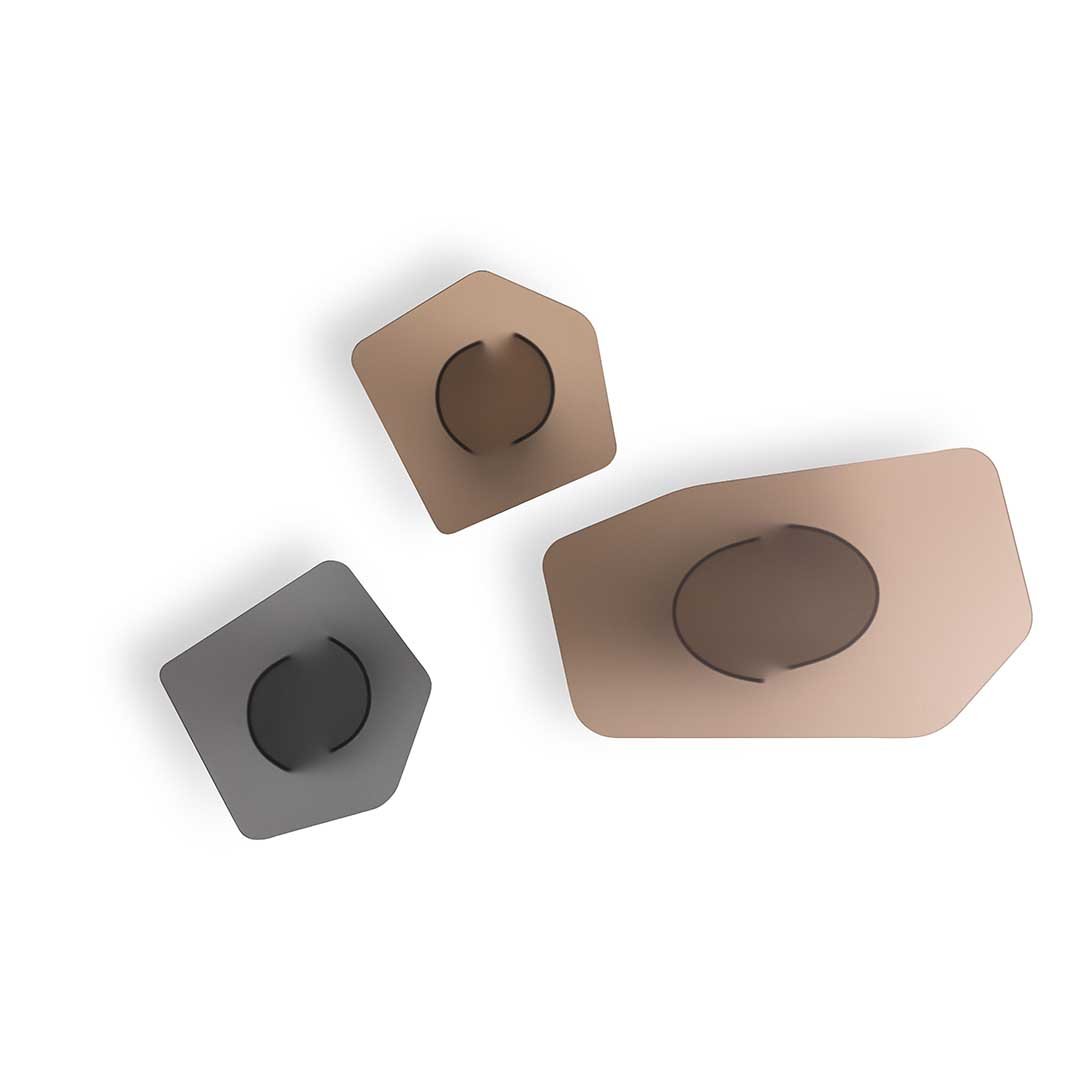 Glass top with “”soft touch”” finishing in smoke grey or bronze colour, coordinated with the base.