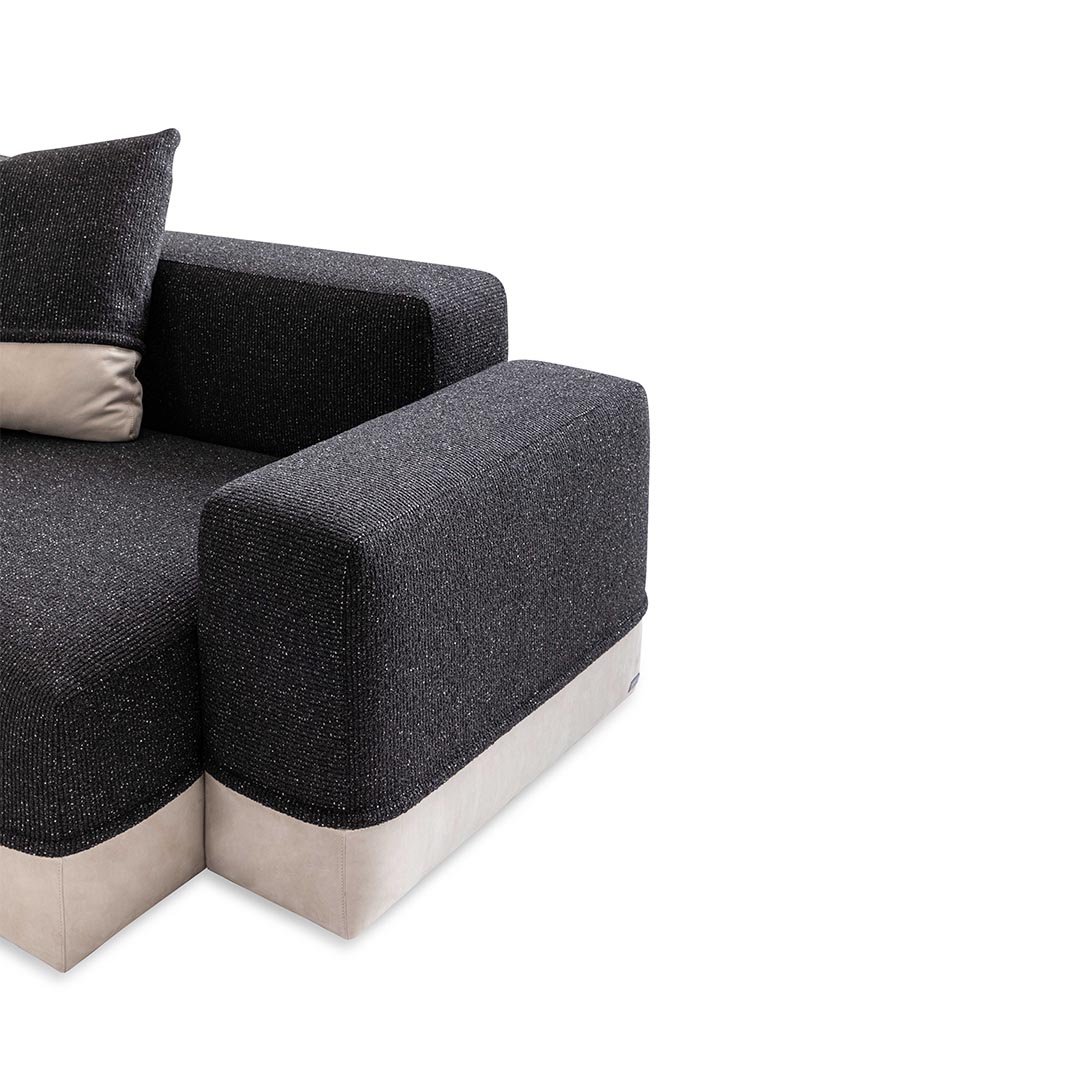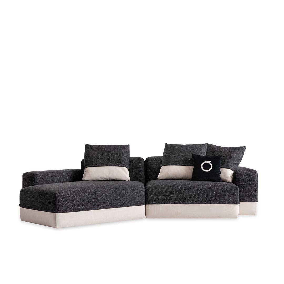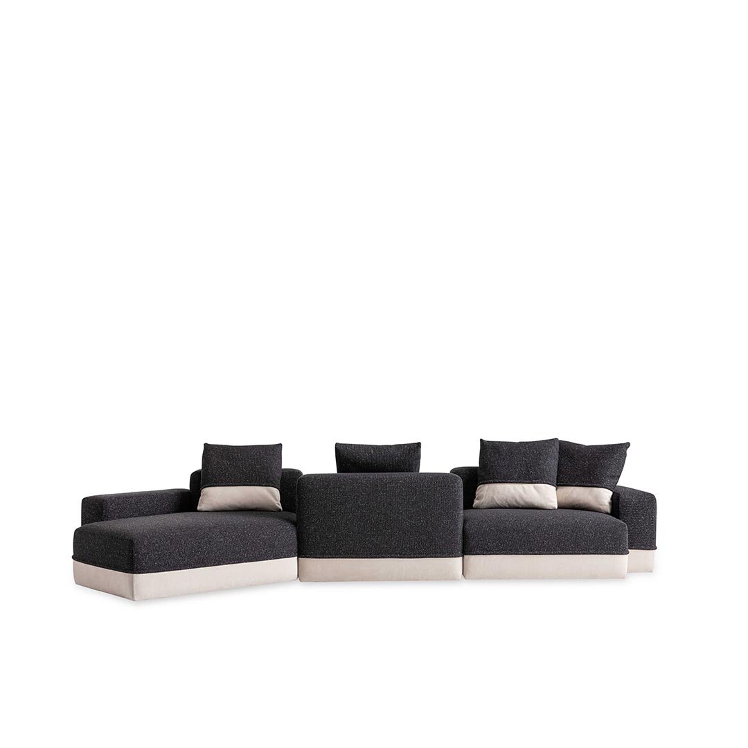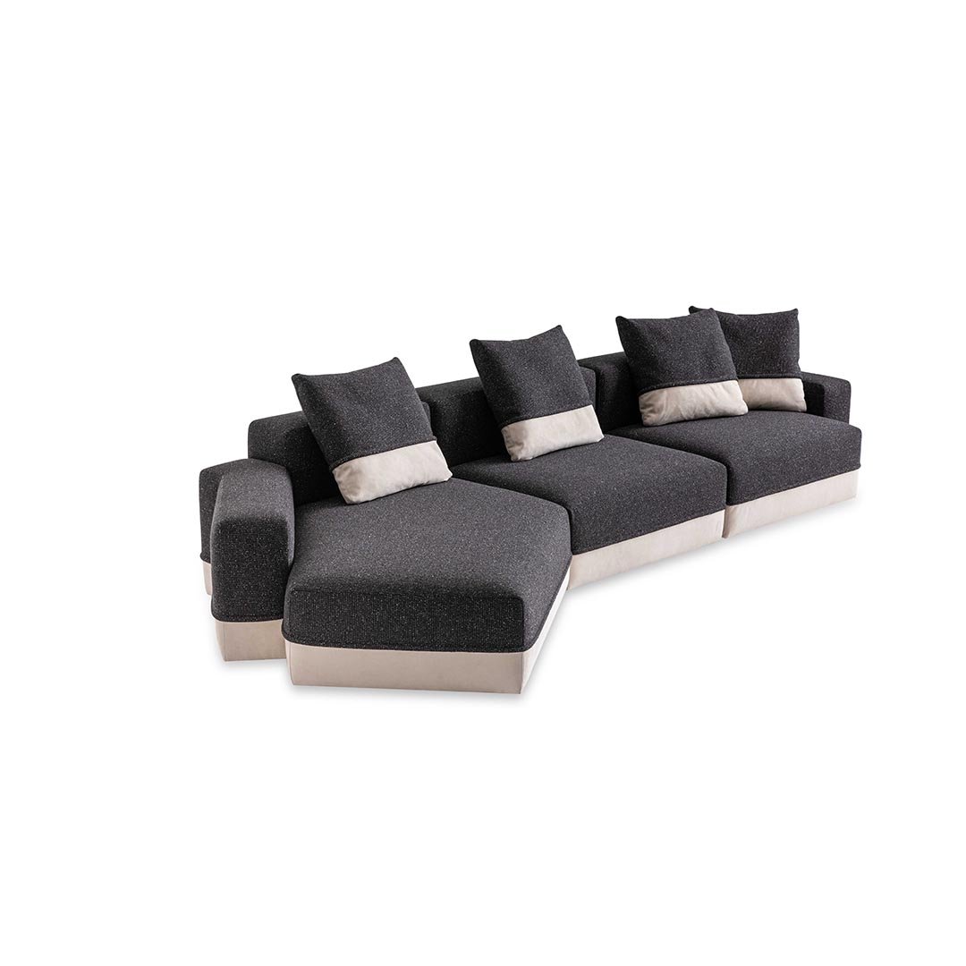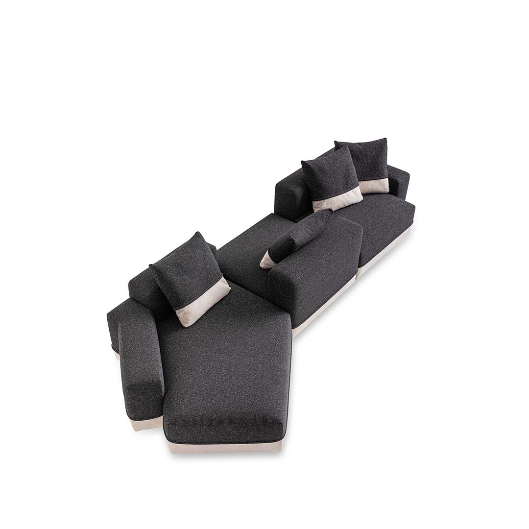 Designed by Carlo Colombo, the modular sofa Godwin is the symbol of the collection: its irregular shapes and segmented lines intersect to define space. Well-proportioned and flexible shapes that recall the concept of nature coupled with large, soft paddings outline an all-new modular approach.