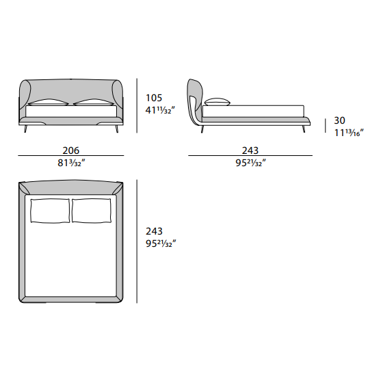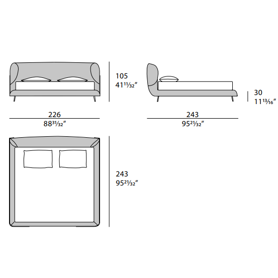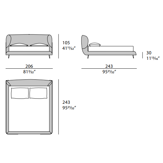 The bed of the Soul collection immediately refers to a feeling of relaxation and well-being. The rounded and accommodating headboard, slightly curved around the mattress, follows the pattern of the seams, giving further softness to the shapes and wooden details that incorporate the bed frame and the headboard. Everything appears as a single and sinuous body. The bed of the Soul collection is available in different finishes as per sample card.