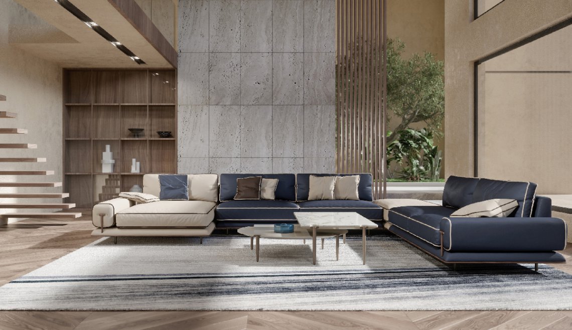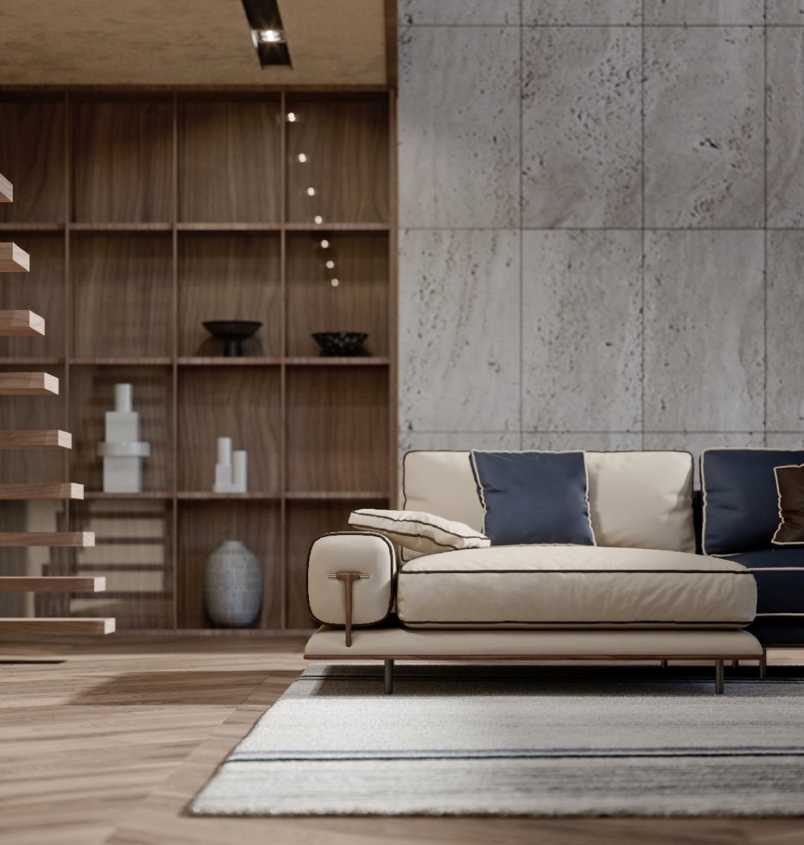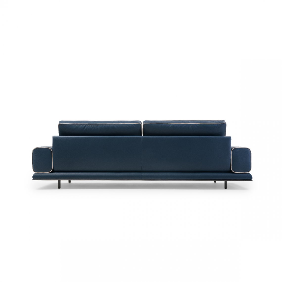 Even as a 2 or 3-seater, the Blues sofa is outstanding for its minimalist design and at the same time for the richness of its details : the walnut wood base, linear and uniform is supported by tubular metal legs. Thanks to an ample choice of modules, starting from the central ones up to the end pieces and the chaise longue, including the corner units and the poufs, the modular compositions are several and satisfy most requirements. The Blues sofa is available in different finishes as per sample book.
