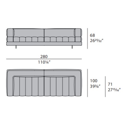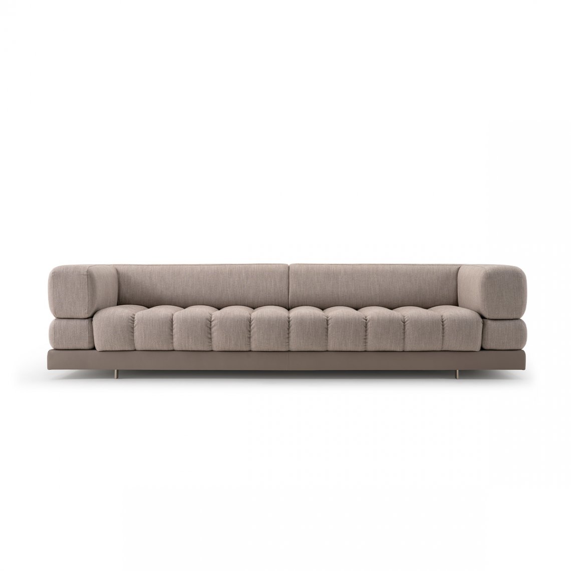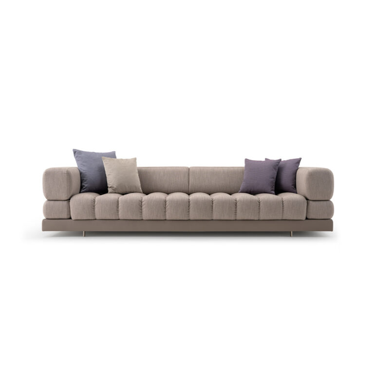 The sofa of the Domus collection is fully padded and made up of “tops” that design the seat and back. Available in four different versions: armchair, 2-seater, 3-seater, 4-seater. It can be covered entirely in fabric, all in leather or by differentiating the section of the base. The Domus sofa is available in different finishes as per sample card.