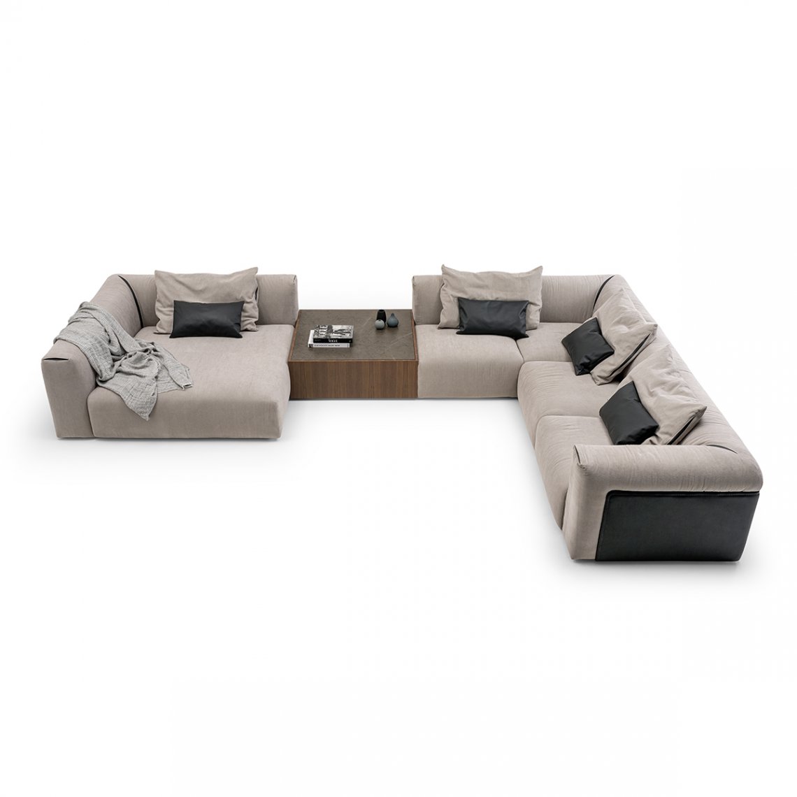 The modular sofa of the Soul collection is a versatile living room. Thanks to the possibility of combining different modules, from corner seats, chaise longue or coffee tables with wooden base and marble top, it allows a wide margin of customization, to create unique pieces of furniture as in the choice of finishes. The Soul modular sofa is available in different finishes as per our samples book.