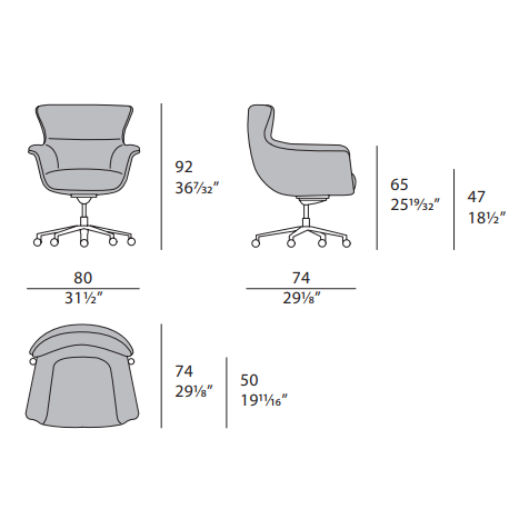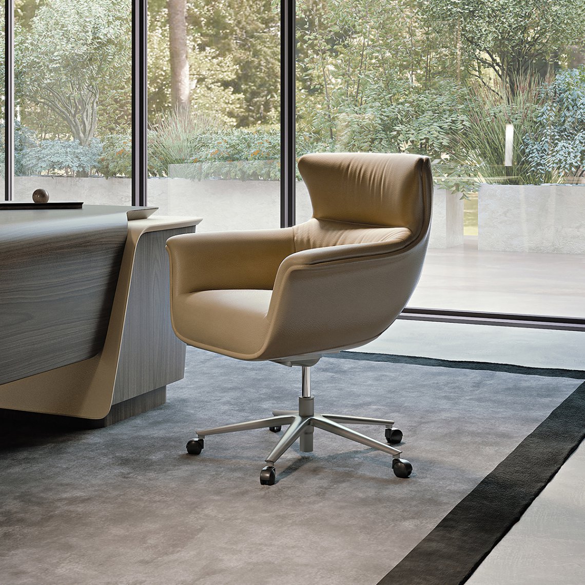 The Blues office armchair offers an ergonomic seat that can be made in leather or fabric. The backrest is enveloping to welcome and support the individual, available in the high or low version. The Blues armchairs are available in different finishes as per sample card.