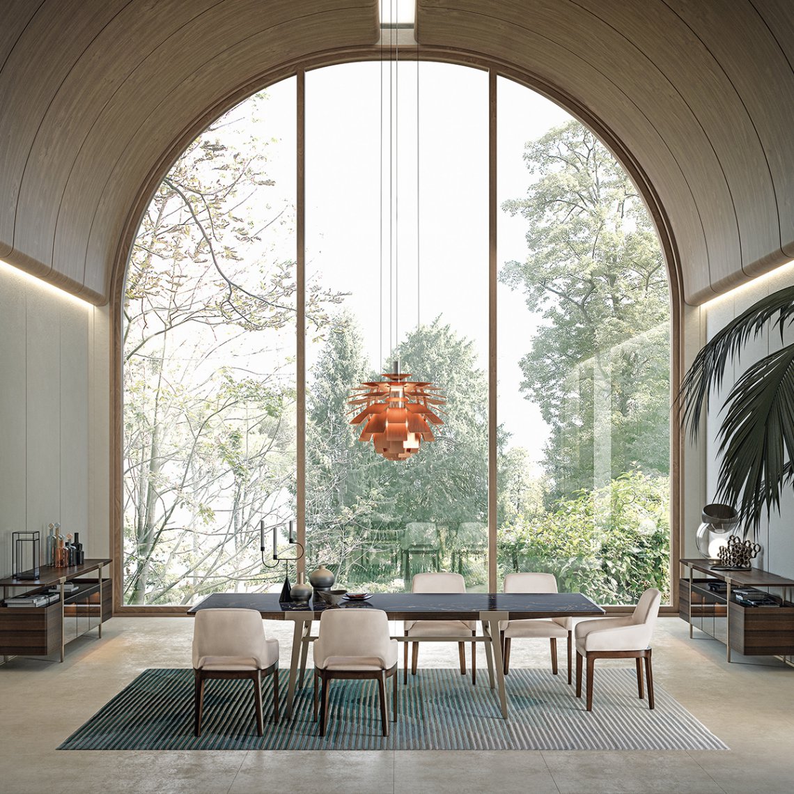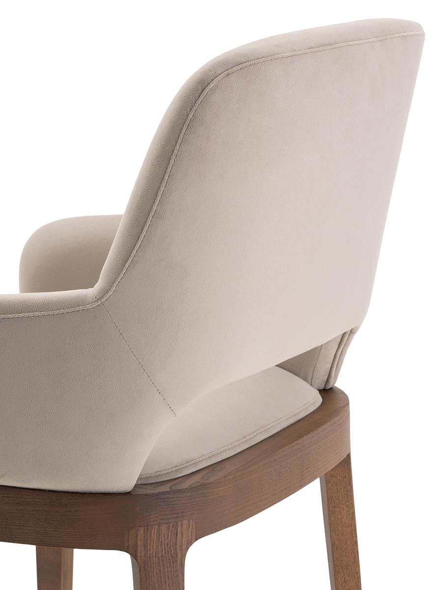 The chair of the Domus collection is made starting from the basic element with which the whole collection was conceived: Eucalyptus wood. The line of the back has a decorative cut in the final part in contact with the seat, creating uniqueness in the balance between the essentiality of the line and reworking of the details. The Domus chair is available in different finishes as per sample card.