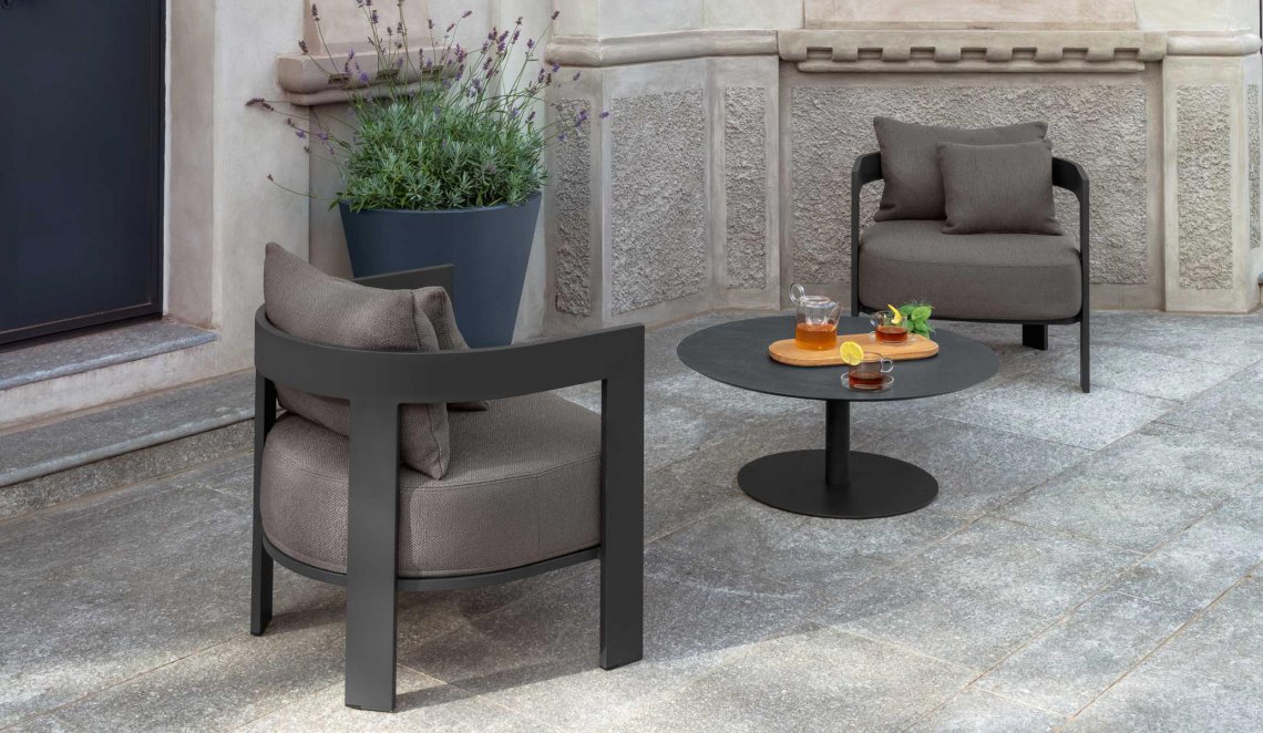 La grande ricerca estetica realizzata da Ludovica e Roberto Palomba, trova la sua massima espressione nella poltrona lounge della linea Argo Alu. L’avvolgente e solida struttura in alluminio si abbina con il comfort e la generosa imbottitura dei cuscini che rendono questo elemento perfetto per trascorrere momenti rilassanti e piacevoli nel proprio living esterno.
