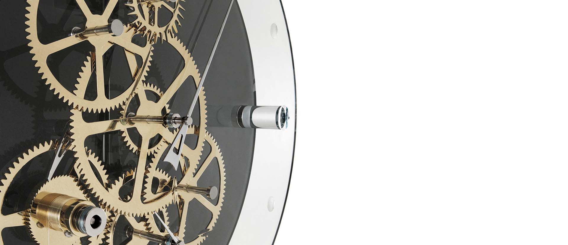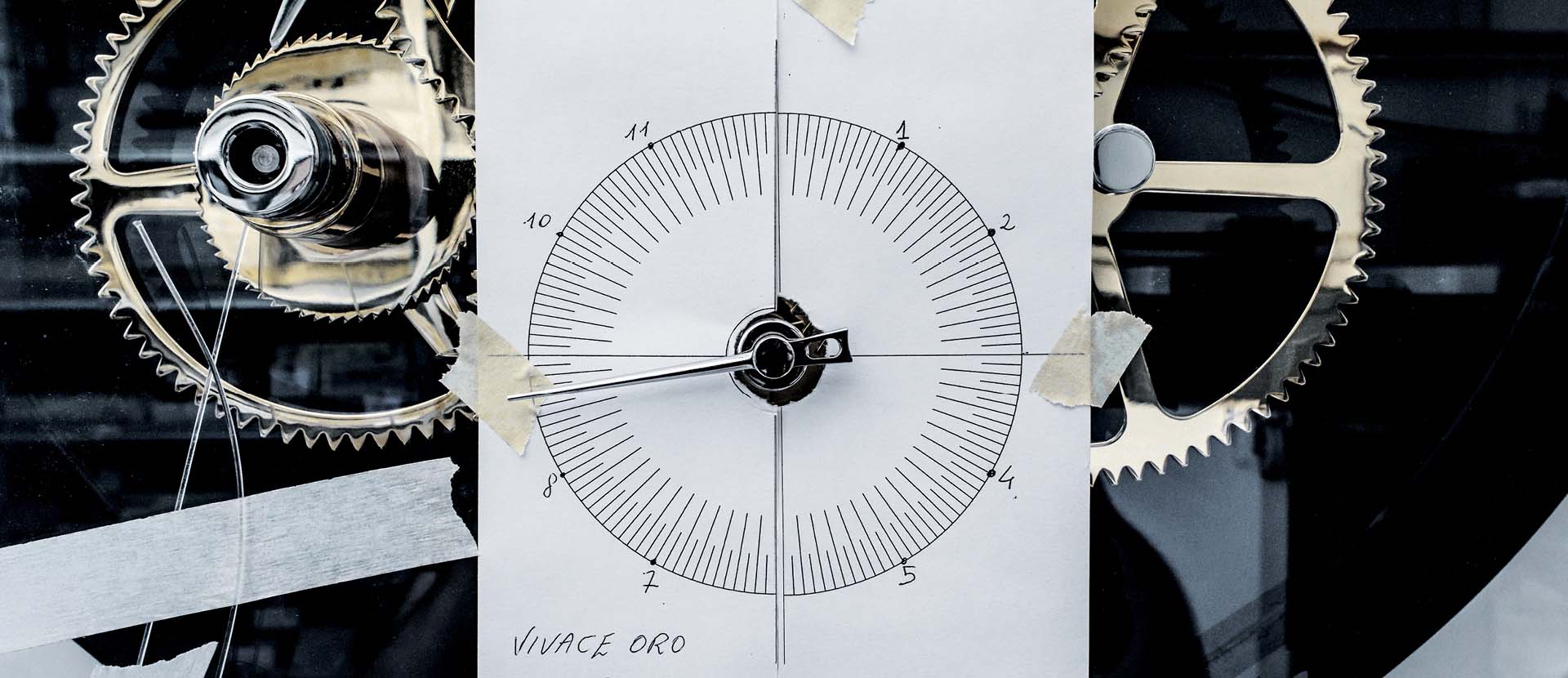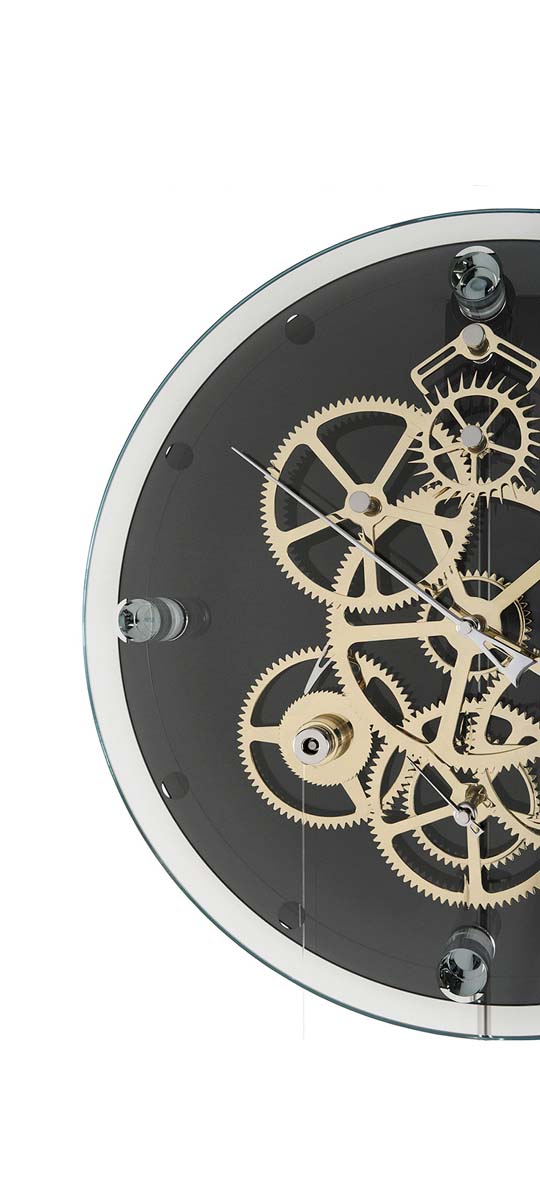 This is the perfect backdrop for the 24K gold-plated mechanism, the clock’s sparkling touch. Literally lively, or Vivace.