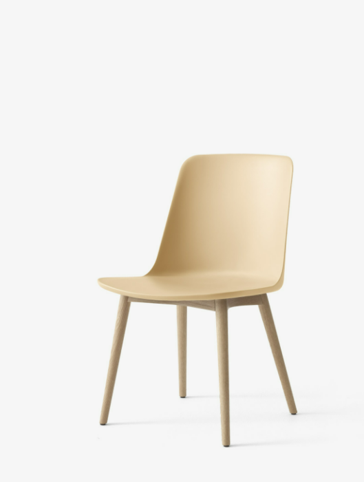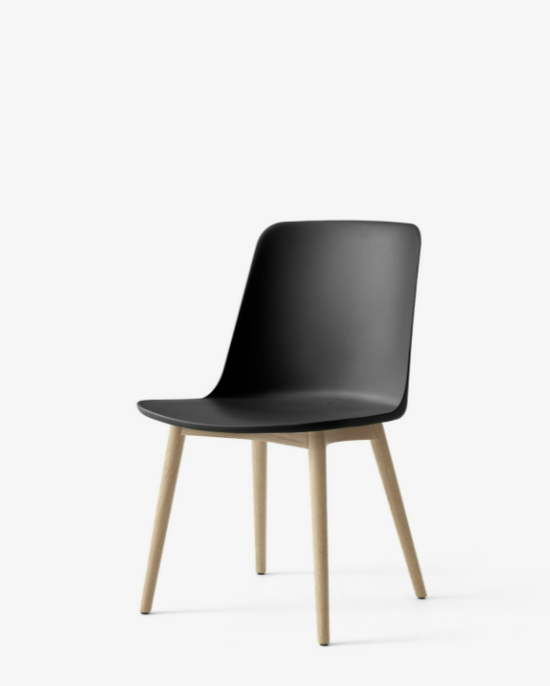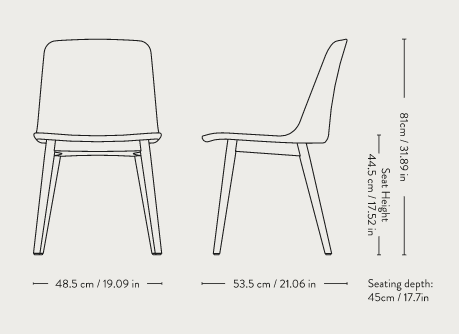 Veneer sheets formpressed together towards a solid wood insert. Milled into shape and lacquered. Natural Rattan weaved around a powder coated stainless steel frame.