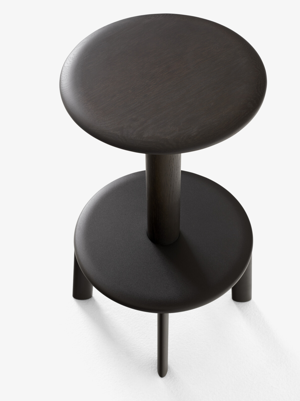 A graphically striking design with an anchoring sense of stability, Anderssen & Voll’s new Massif bar and counter stools denote a totemic silhouette in a compact form. Rich in materiality, the stool is complemented by the smooth swivel function of a solid oak seat.