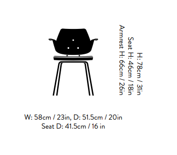 Originally created to seat visitors in the dining rooms of the Royal Festival Hall, the RFH Armchair by Robin Day is charactericed by the softly curved backrest and outwardly reaching arms. Rich in materiality, the chair’s striking form is achieved through a process of form-press moulding layers of beech and walnut veneer.