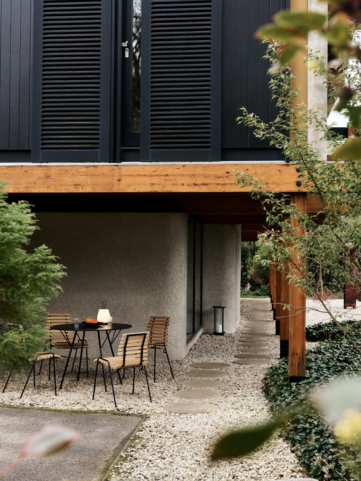 Constituting part of Robin Day’s Royal Festival Hall collection, the RFH Terrace Table is crafted from black, powder-coated steel, making it profoundly hardwearing, fade resistant and waterproof. Standing on four legs which splay out at a slight angle, the table is attributed a soft yet industrial appearance.