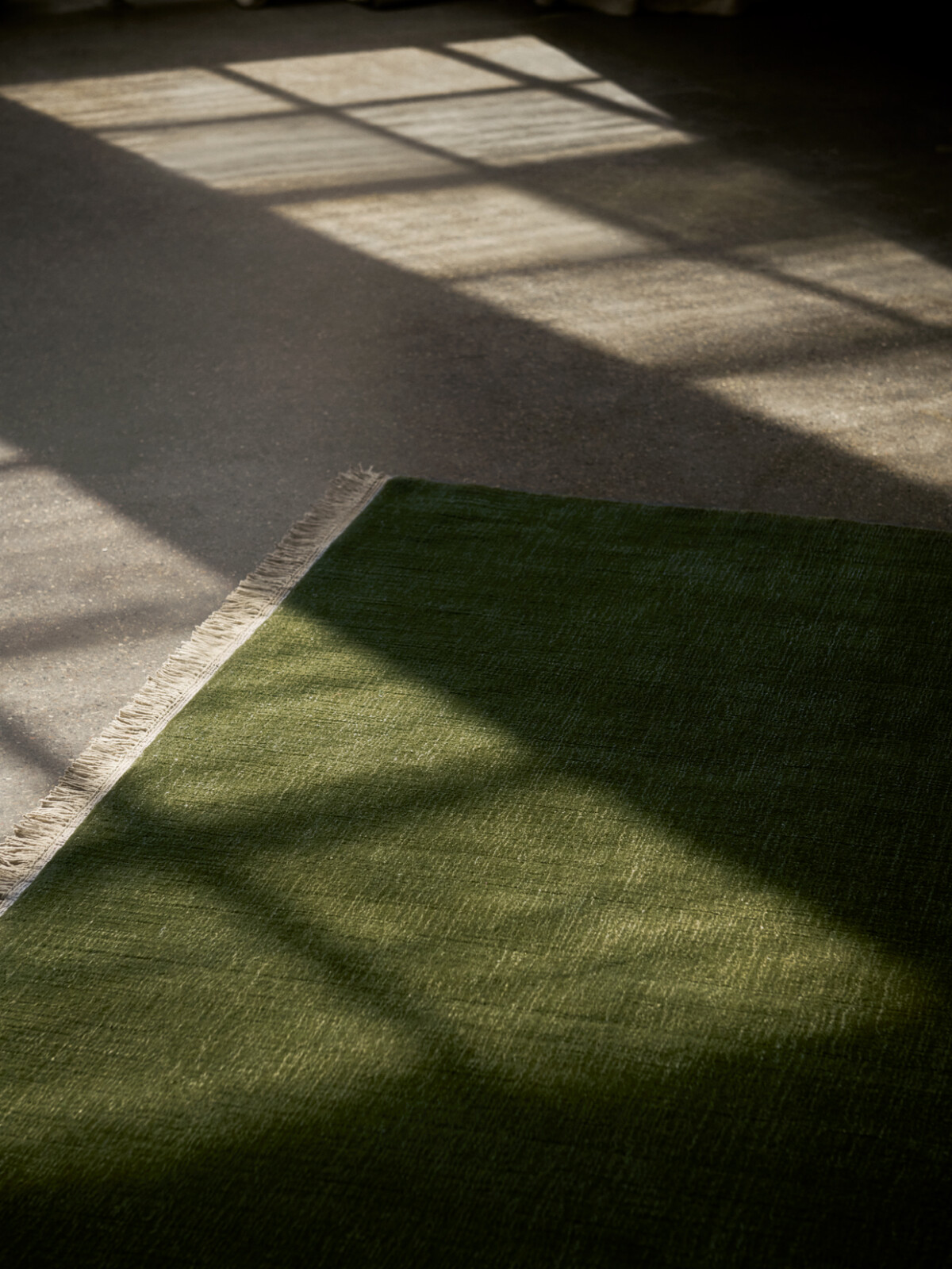 Hand-woven in India, the opulent velvet like expression of The Moor collection now expands to include cotton fringing – bestowing the collection with a profoundly tactile quality. Crafted from a blend of New Zealand wool, the collection seeks to ground a room and provide a feeling of closeness to every space it occupies.