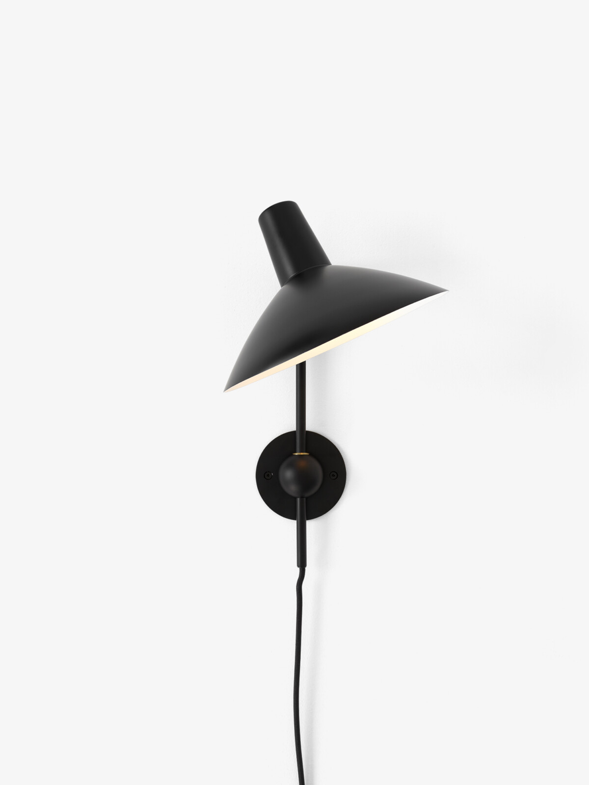 An adaptation inspired by sketches of the original lamp by Hvidt & M?lgaard, the new Tripod Wall Lamp remains true to the essence of the Tripod design. Crafted from lacquered aluminum, the wall lamp is anchored by a spherical base that establishes a visually solid foundation, while the shade’s swivel feature allows the lamp to distribute a generous diffusion of light. The addition of a new colourway, white with brass details, illustrates the timeless appeal of a classic design.
