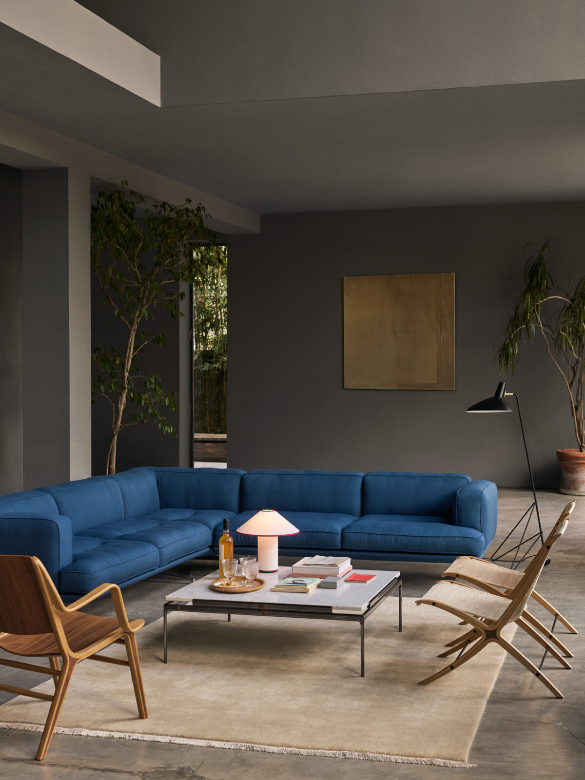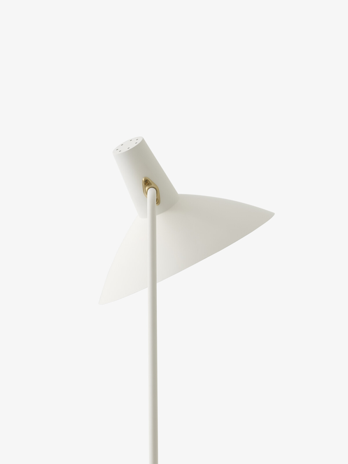 A floor lamp built from lacquered steel, the Tripod strikes a delicate balance between the stark simplicity of its design and the softness injected by the curved edges of its base. For easy articulation and a more precise light, a swivel joint has been developed – a feature now seen across the entire Tripod range. Alongside this, the introduction of a new finish, white with brass details, accentuates the graceful proportions of the original design.