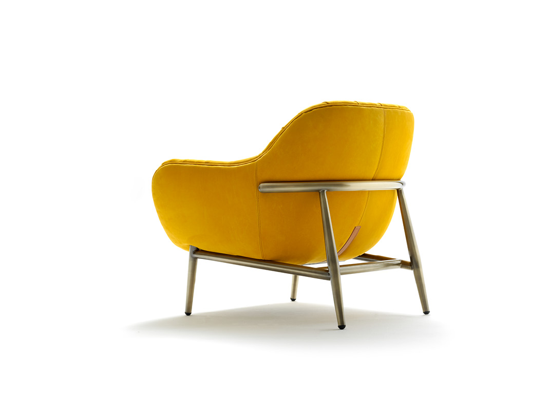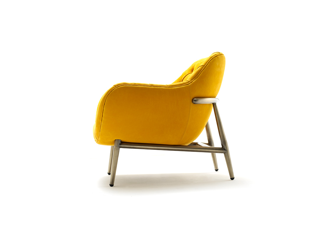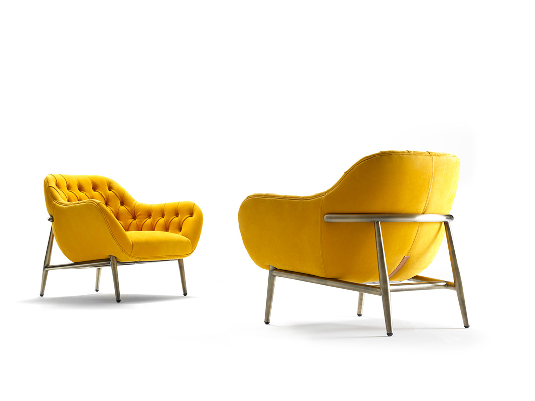 Armchair with inner structure made of wood , covered by a beautiful capitonné finish , hand made with the exclusive leathers selected by Ulivi , or with the fabrics of the new collection 2018 . The elegant external frame , made of steel or solid wood , is available in different finishings.