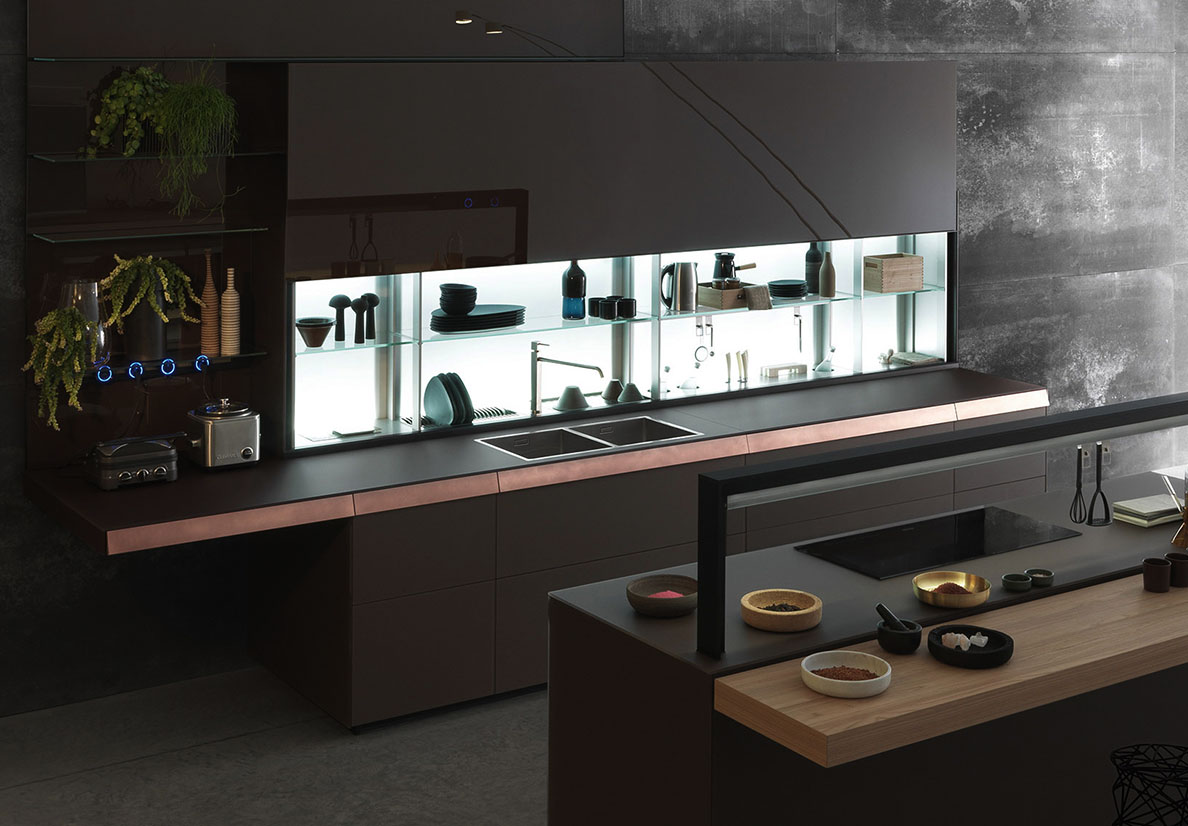 Dal gioco raffinato del vetro, in ogni colore e finitura, ai legni dalle forti sensazioni tattili, dalle superfici laccate ai laminati metallici. L’espressione del gusto personale di ogni Cliente diventa eterna, fino a raggiungere l’unicità tipica di un’opera d’arte, rappresentata nella trasparenza del vetro. Artematica è stata studiata nei dettagli per rendere i gesti più semplici e disinvolti, le chiusure morbide, per rispettare i più elevati standard di sicurezza tramite la stondatura lungo gli spigoli e i profili.