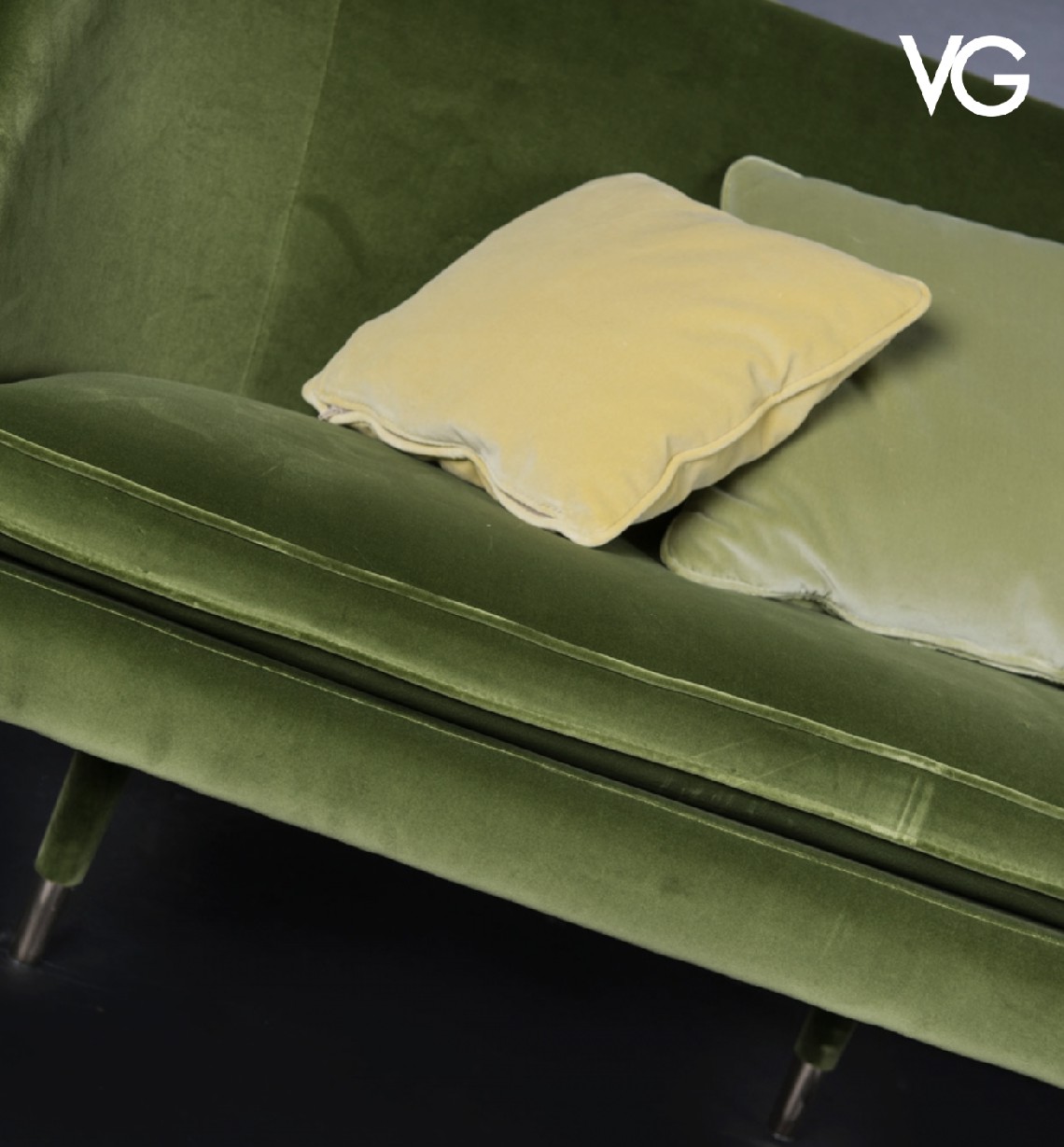 Classic and elegant velvet sofa, characterized by a comfortable upholstered seat and backrest.
