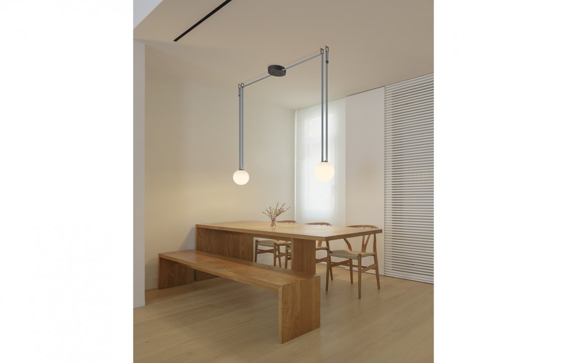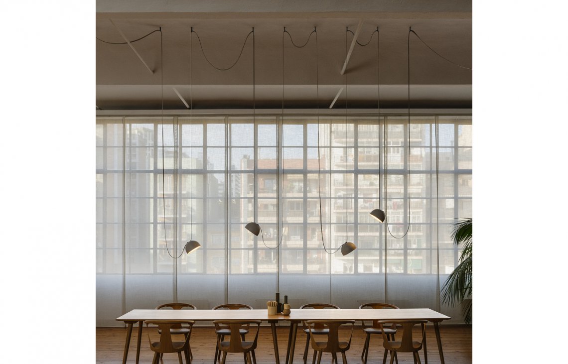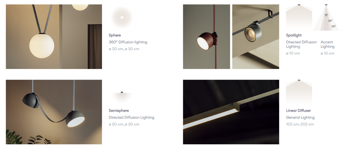 Plusminus is a versatile lighting system that takes the concept of the light rail to a new level. The conductive textile ribbon at its core allows for free placement of the luminaires and the creation of unique light solutions on the spot.