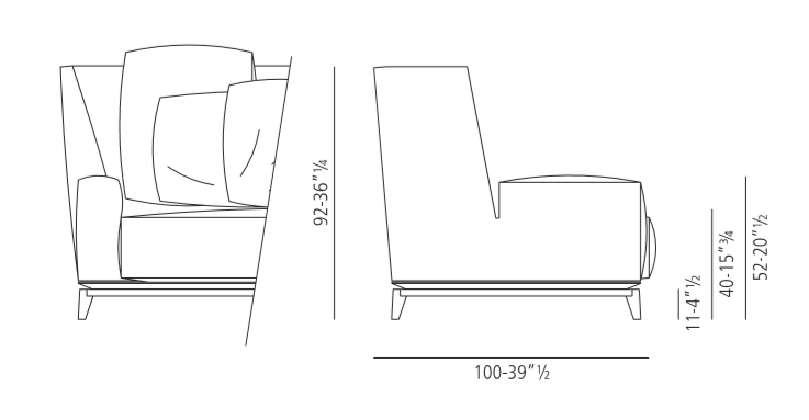 430 Opera is available in multiple sizes and number of seats. This sofa can be matched with armchairs and small armchairs. The most interesting feature of the 430 Opera sofa is the elegance of its particularly high backrest and the leather base that beautifully frames walnut wood feet.