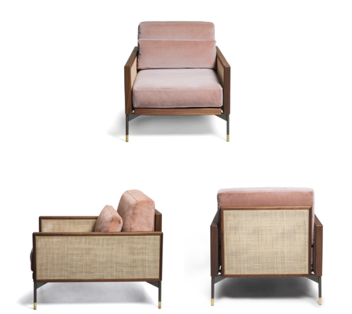 Armrests and backrest’s finishes are in Viennese cane, a material having antique and noble looks and manufacture.
