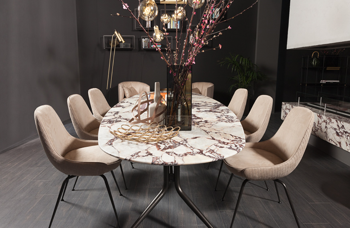 The Swing collection is extremely rich of elements whose structure develops on coneshaped legs.