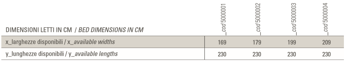 5000 Queen has a wood plastic composite and plywood structure and has been designed with the utmost attention to style, fineness, quality and care for details that are typical of Interior Design Made in Italy.
