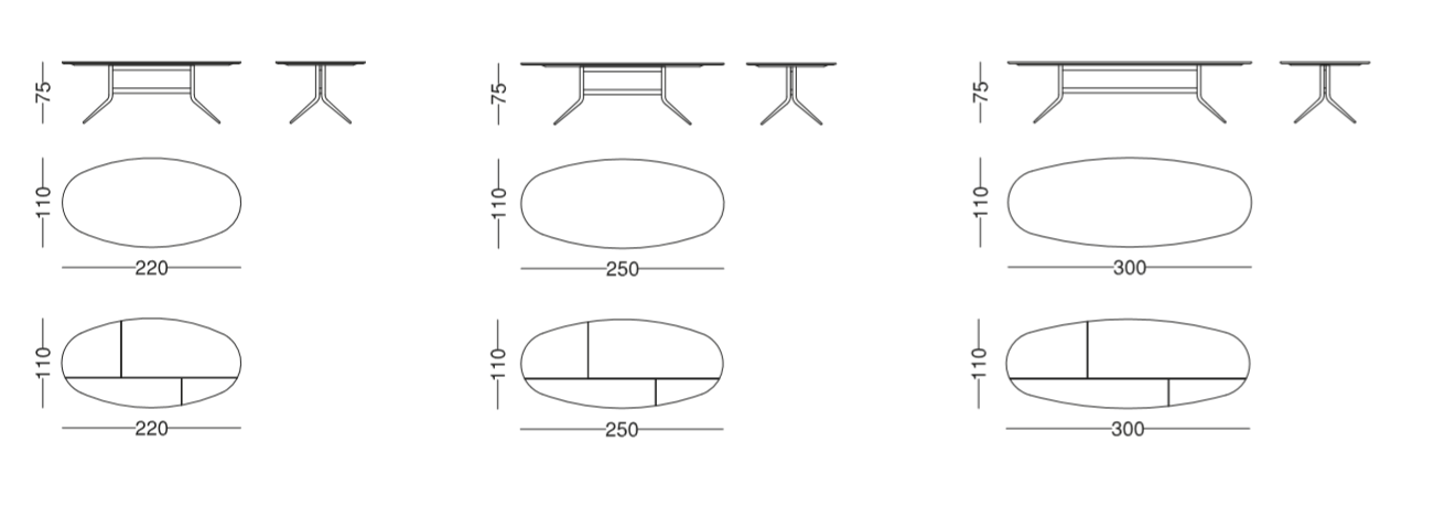 The Swing_Coffee Tables and Console collection is composed of elements having different shapes: oval, rectangular and round, with different diameters.